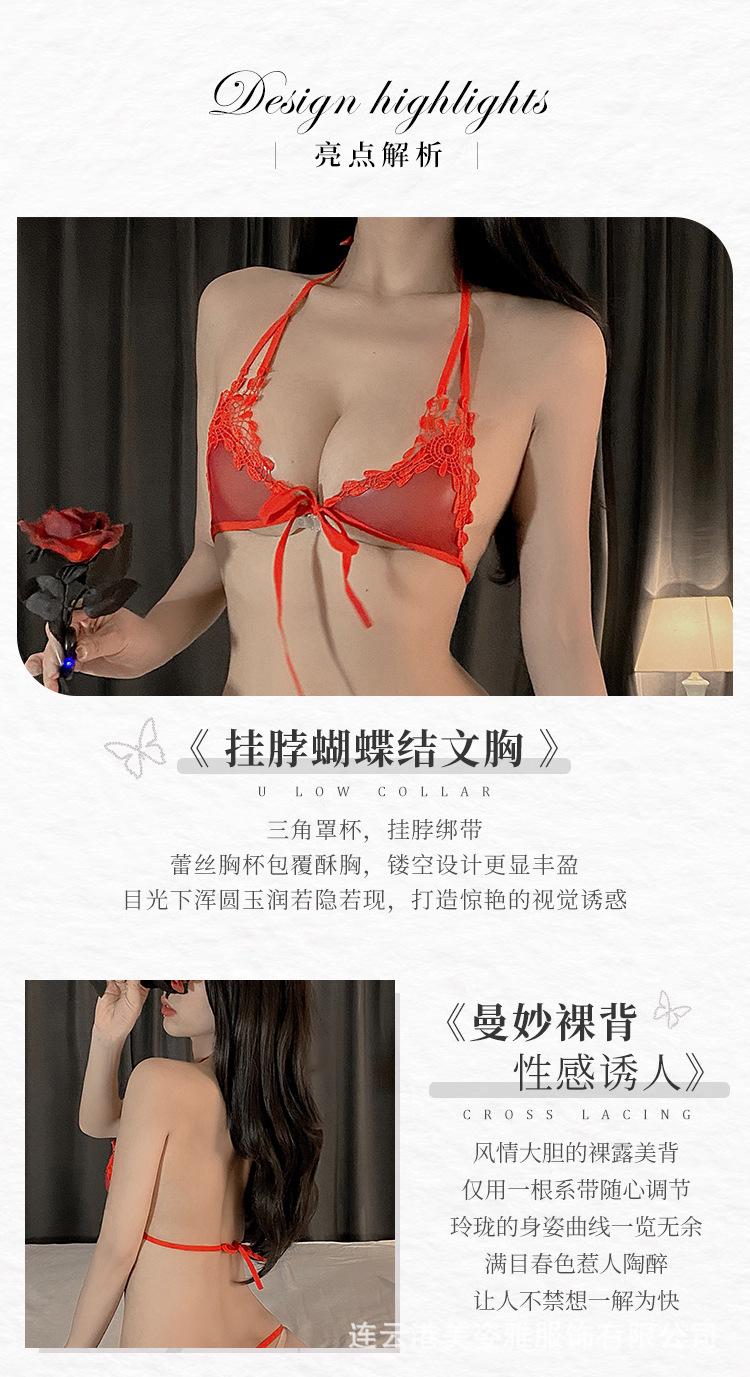 Divertido Traje de Baño de Tres Puntos Sujetador Ropa Interior Ropa Interior Pecho Pequeño Sujetador Realce Encaje Bikini Traje de Baño Mujer