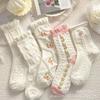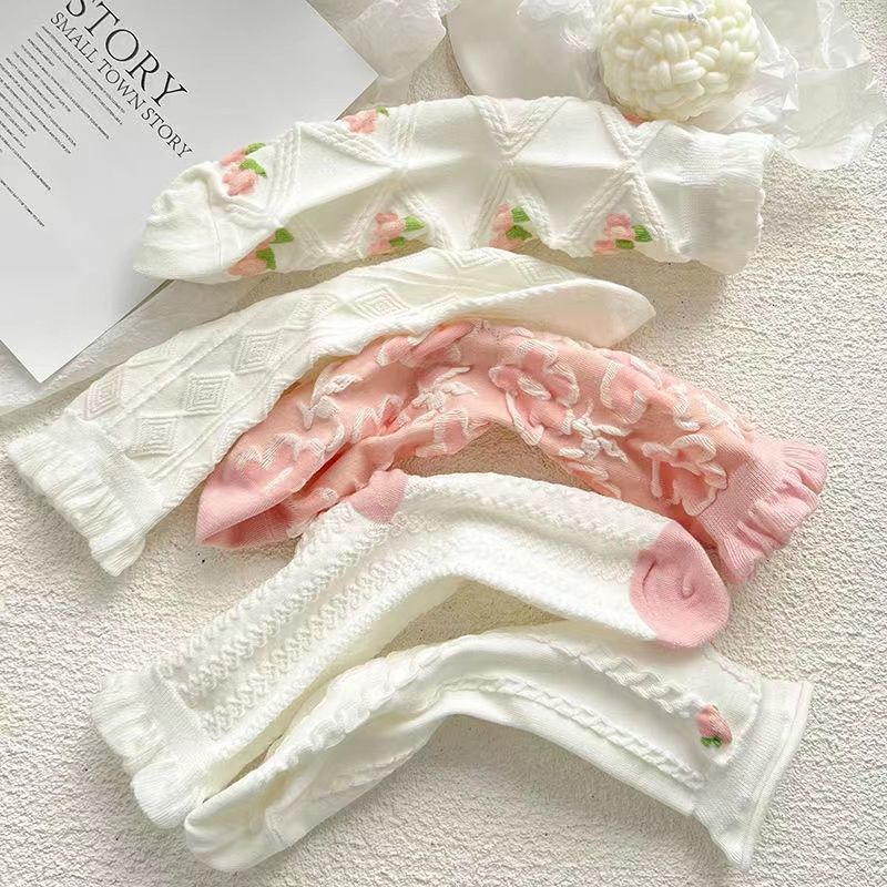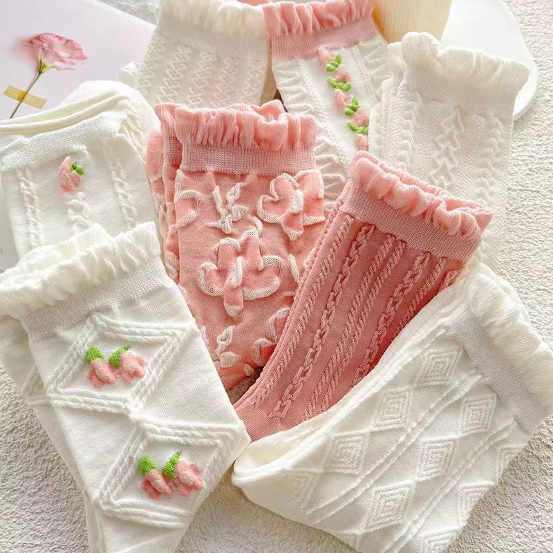 Calcetines Rosas de Verano Estilo Japonés Calcetines Medianos para Mujer ins Trendy Combinan con Todo Primavera y Verano Delgados Lindos Encaje Calcetines jk Algodón Puro