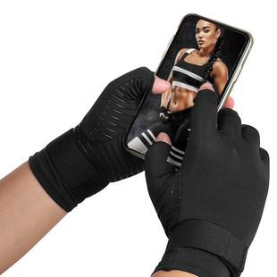 Guantes de presión de fibra de cobre para hombres y mujeres, deportivos, fitness, antideslizantes, de medio nudillo, con protección de muñeca de iones de cobre.