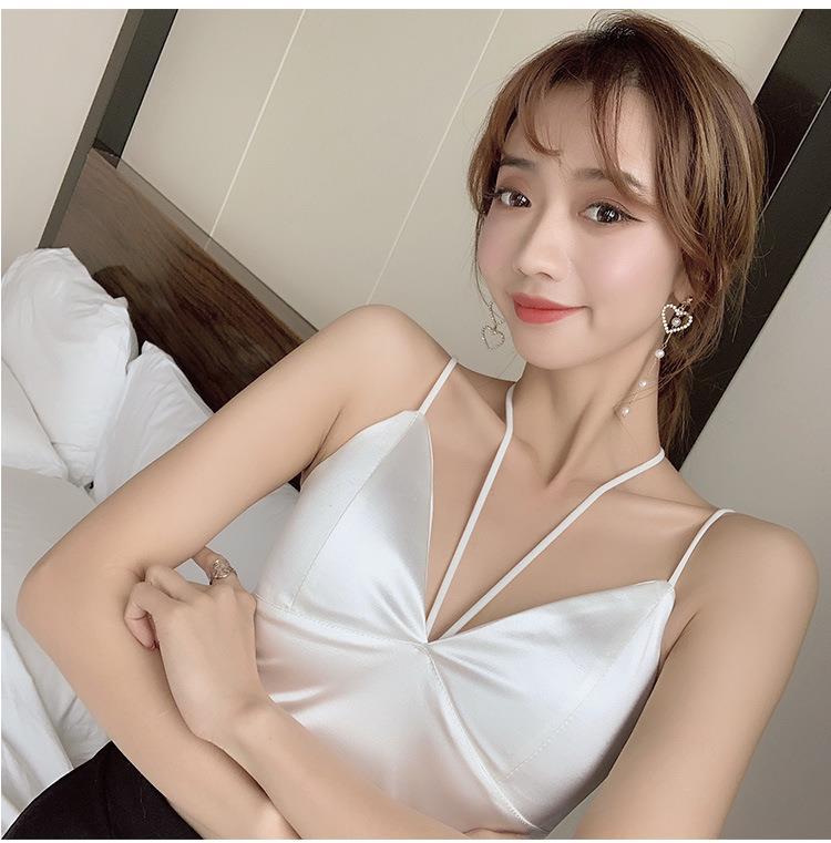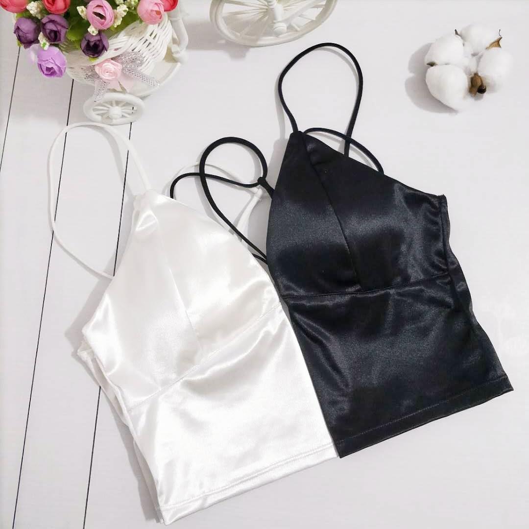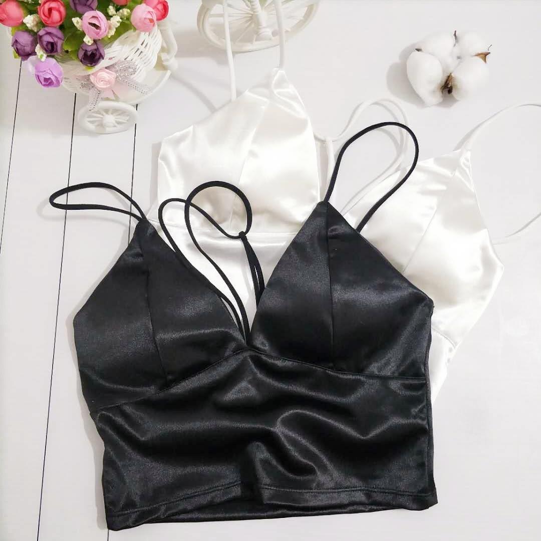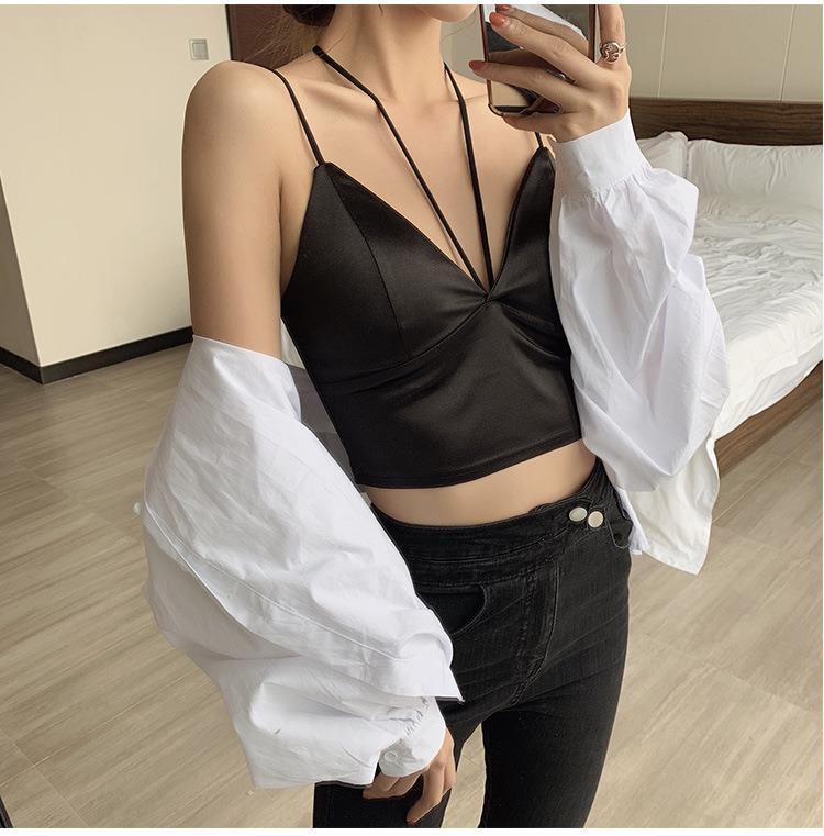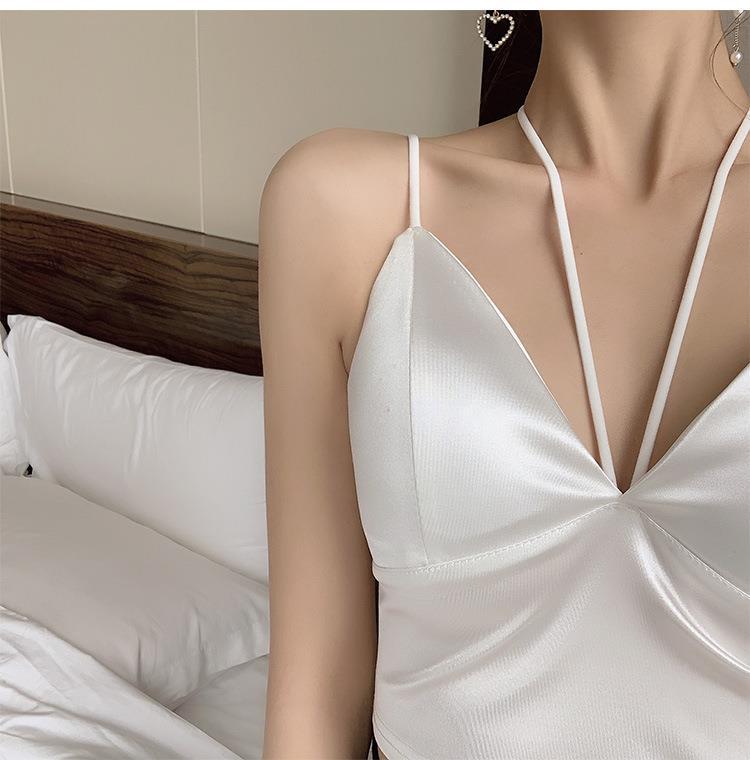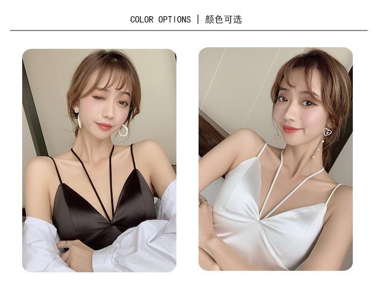 Halter de comercio exterior europeo y americano con pecho envuelto, satén de seda, tirante, espalda bonita, chaleco con tirantes, almohadilla para el pecho, ropa interior, ropa exterior, pequeño tirante para usar debajo