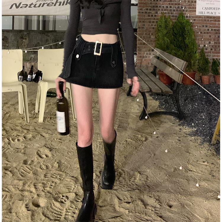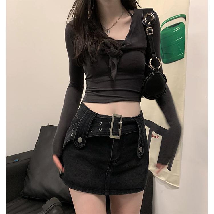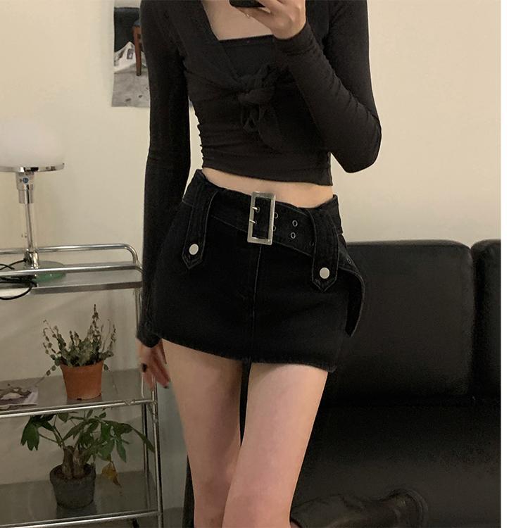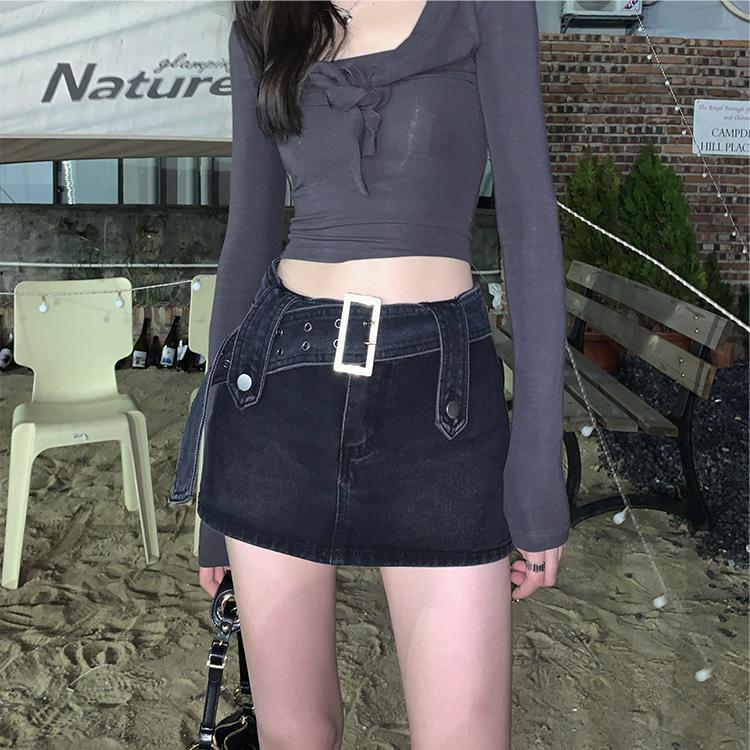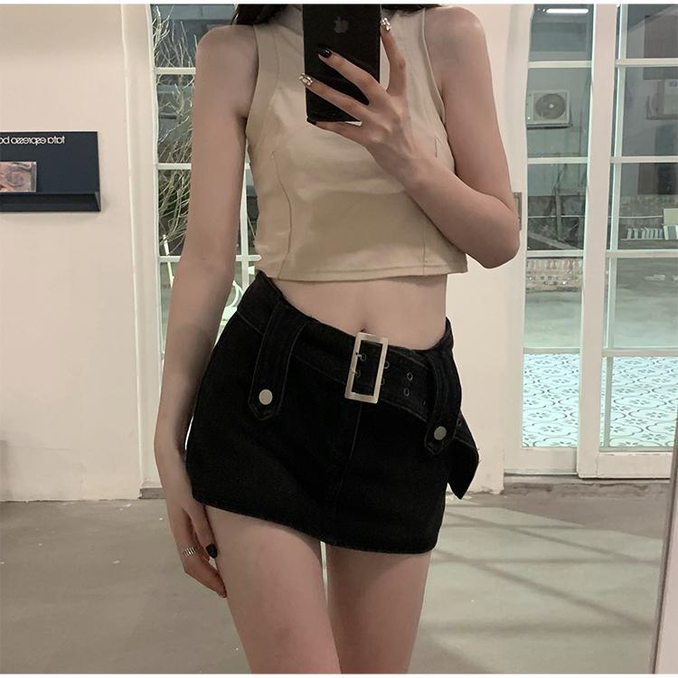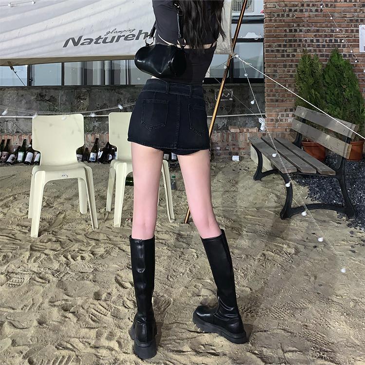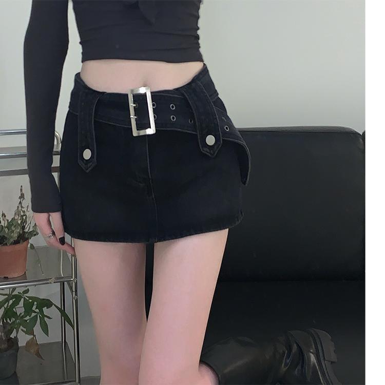Falda Corta de Mezclilla Nicho Verano para Niña Nueva Moda Combinable Chica Hot Cintura Alta Antitransparente Línea A Falda Media Longitud Moderna