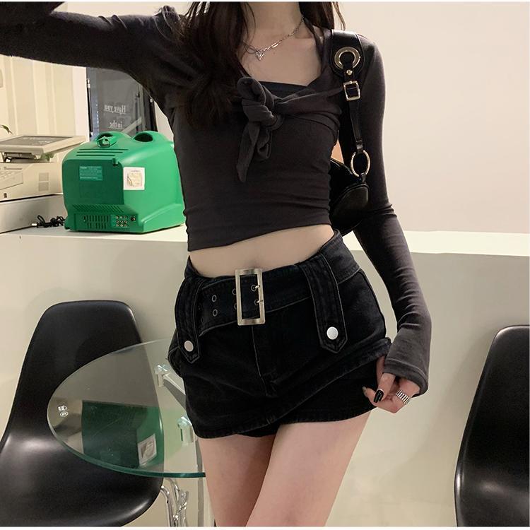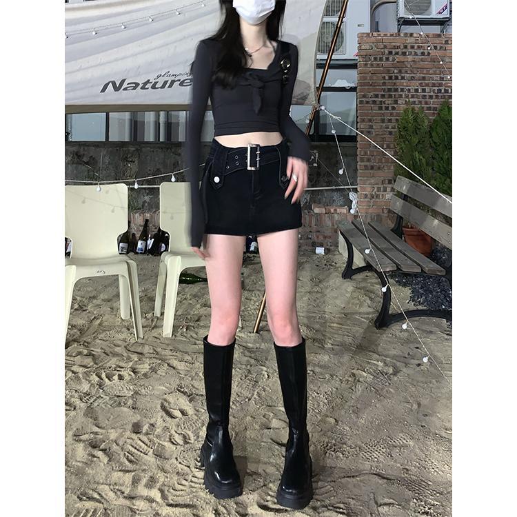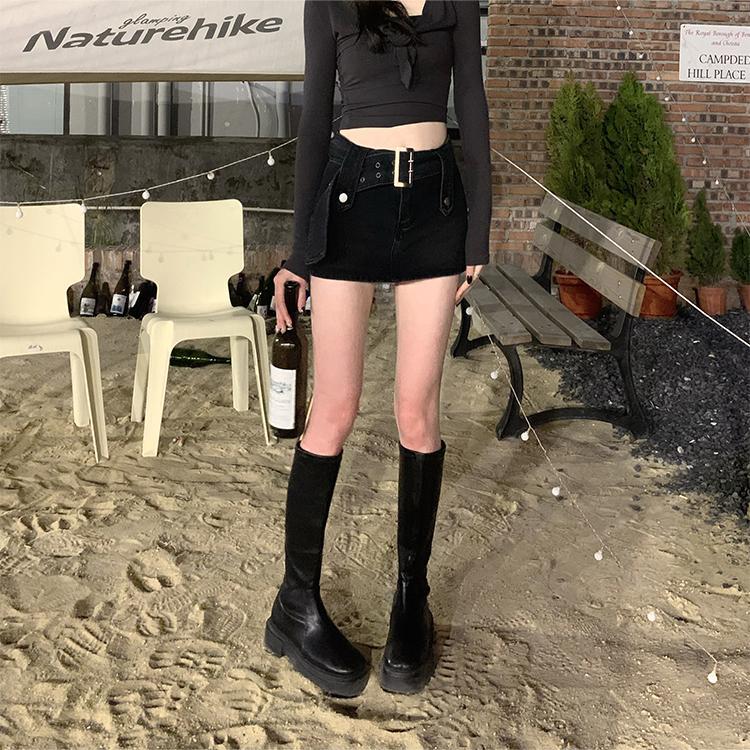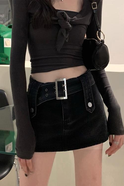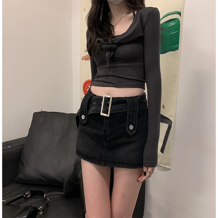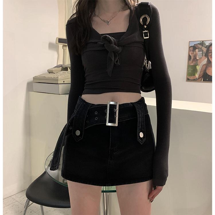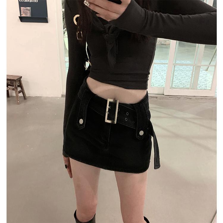 Falda Corta de Mezclilla Nicho Verano para Niña Nueva Moda Combinable Chica Hot Cintura Alta Antitransparente Línea A Falda Media Longitud Moderna