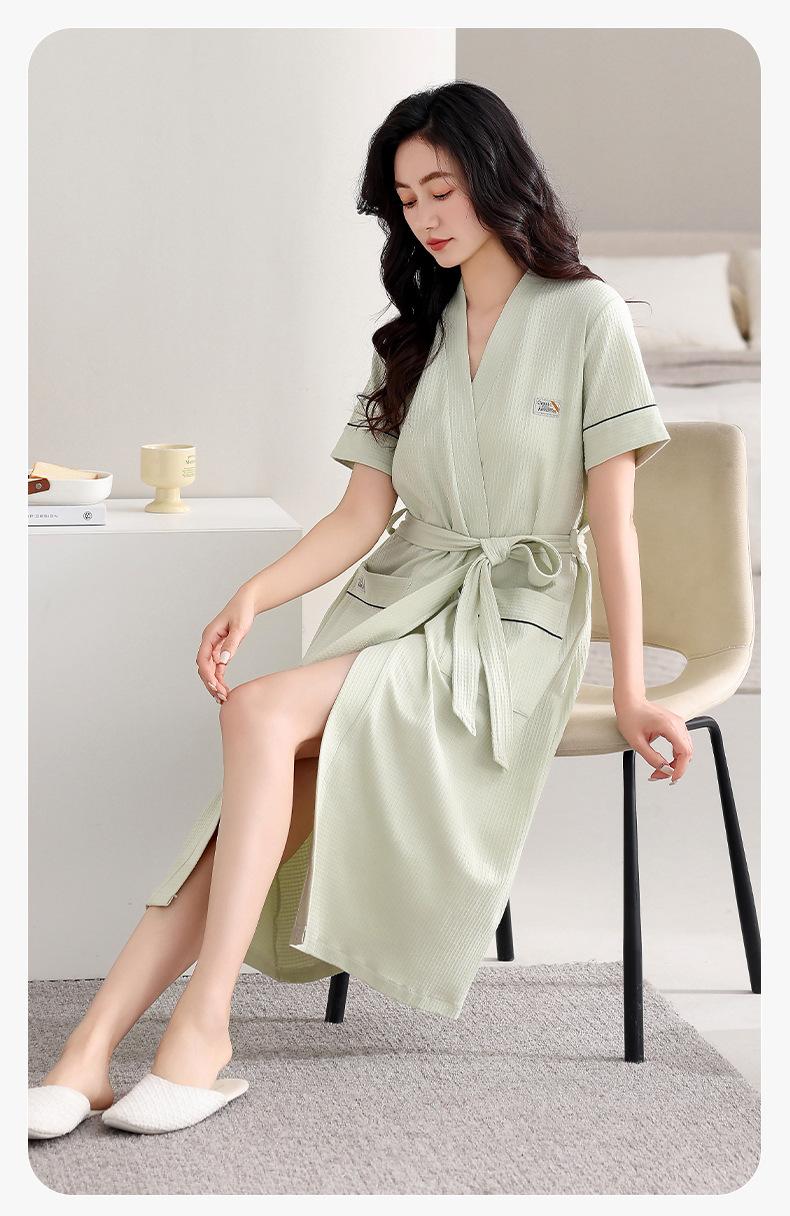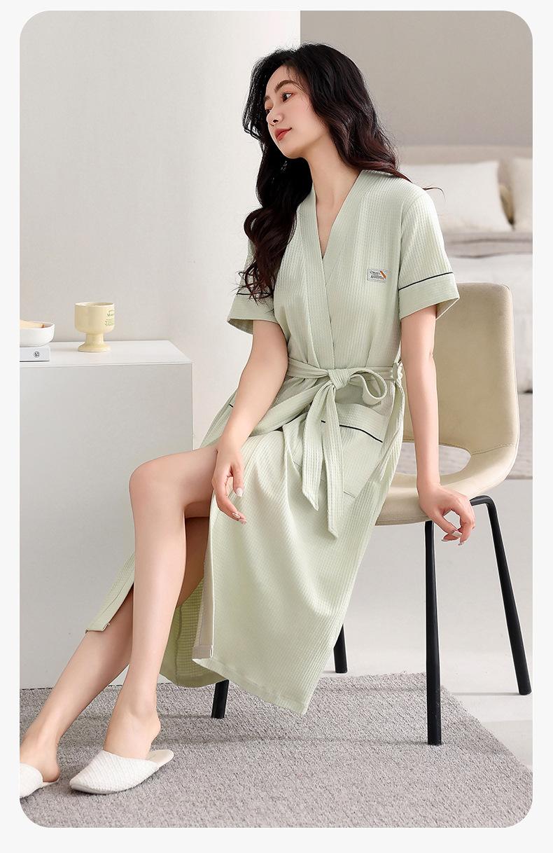 Bata para Mujer Verano Delgada Algodón Puro Manga Corta Camisón Todo en Uno Pijama Toalla de Baño Verano Verano Talla Grande Ropa para el Hogar