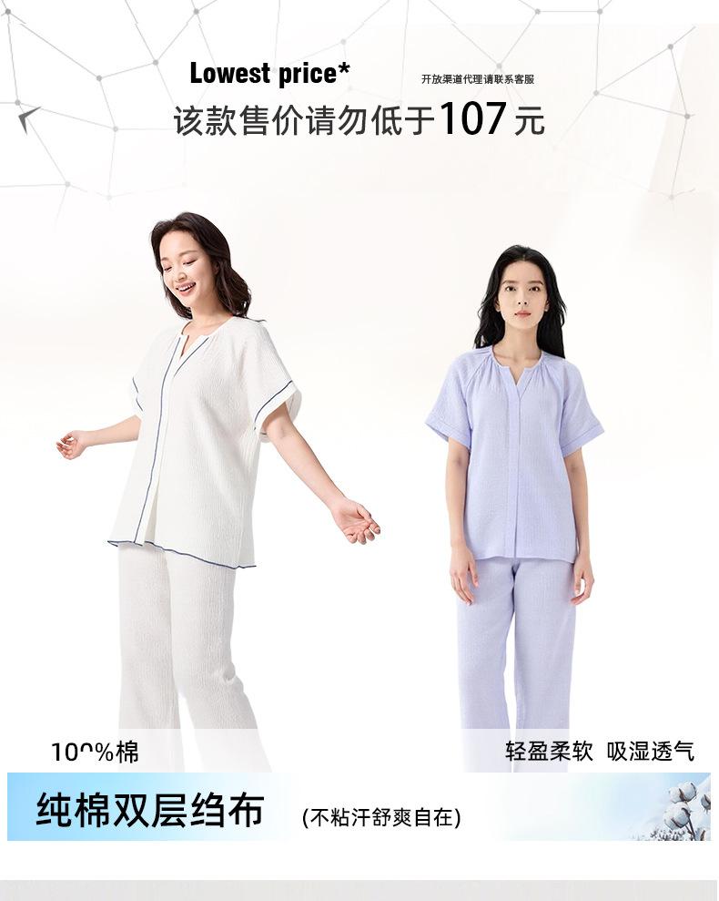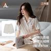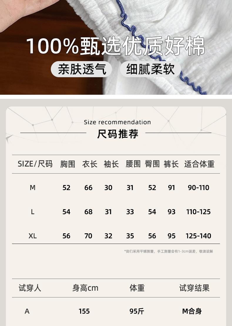 El Nuevo Conjunto de Pantalón de Manga Corta de Algodón Gasa de Doble Capa para Estar en Casa de Yuyue se Puede Usar Afuera Pijama Casual de Crepé y Pijama para Mujer