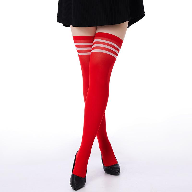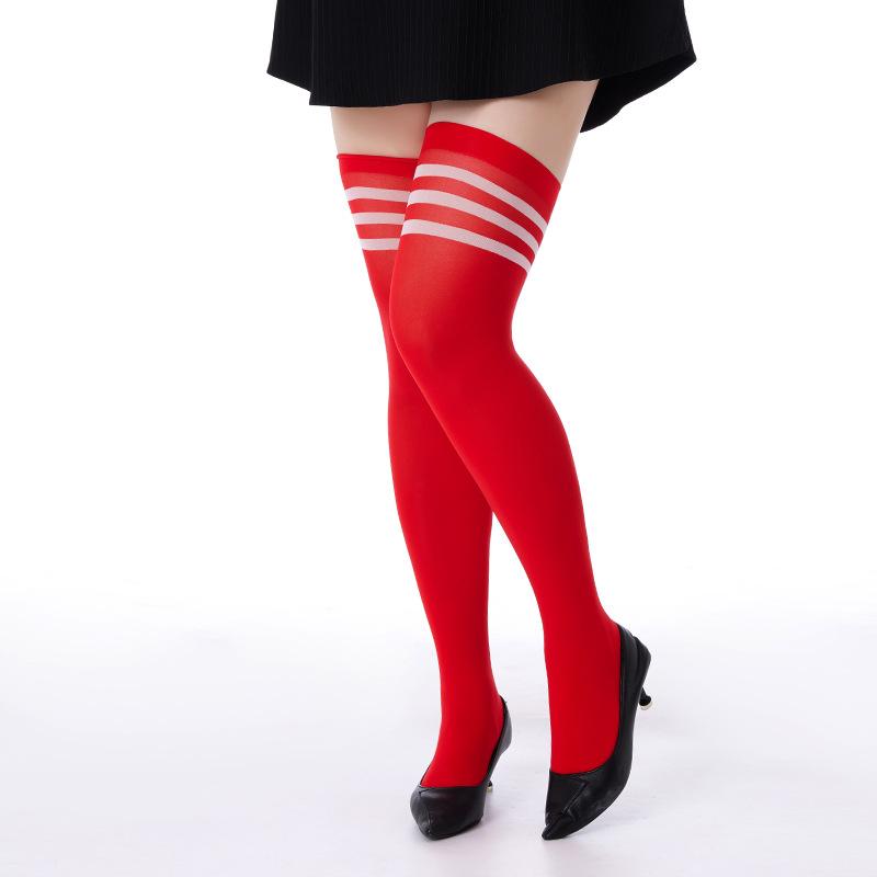 Medias de Talla Grande a Rayas Rojas y Blancas por Encima de la Rodilla