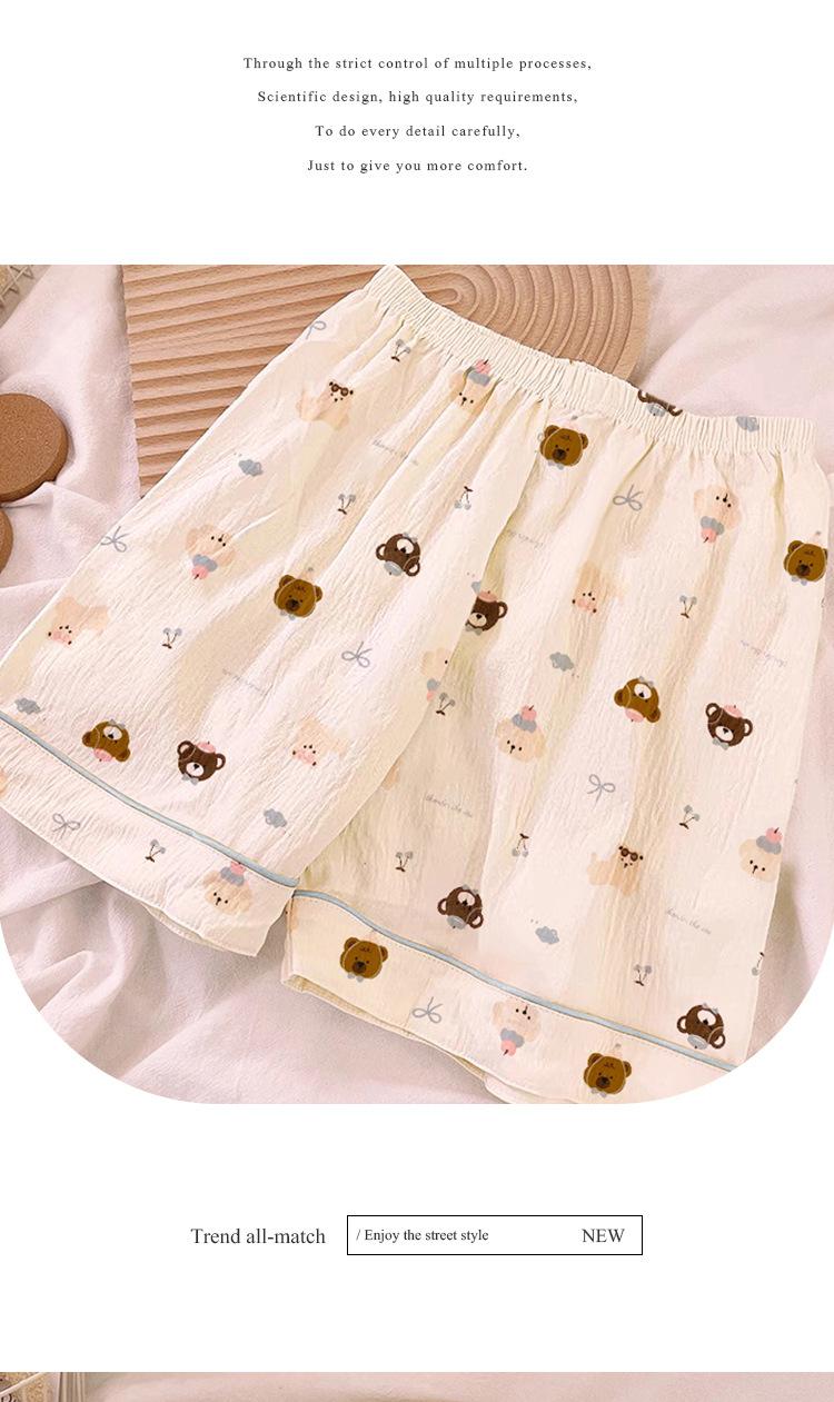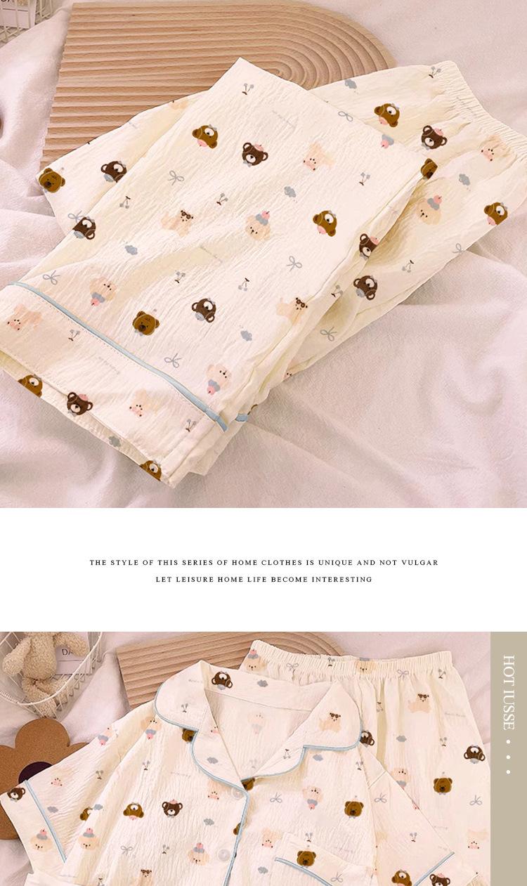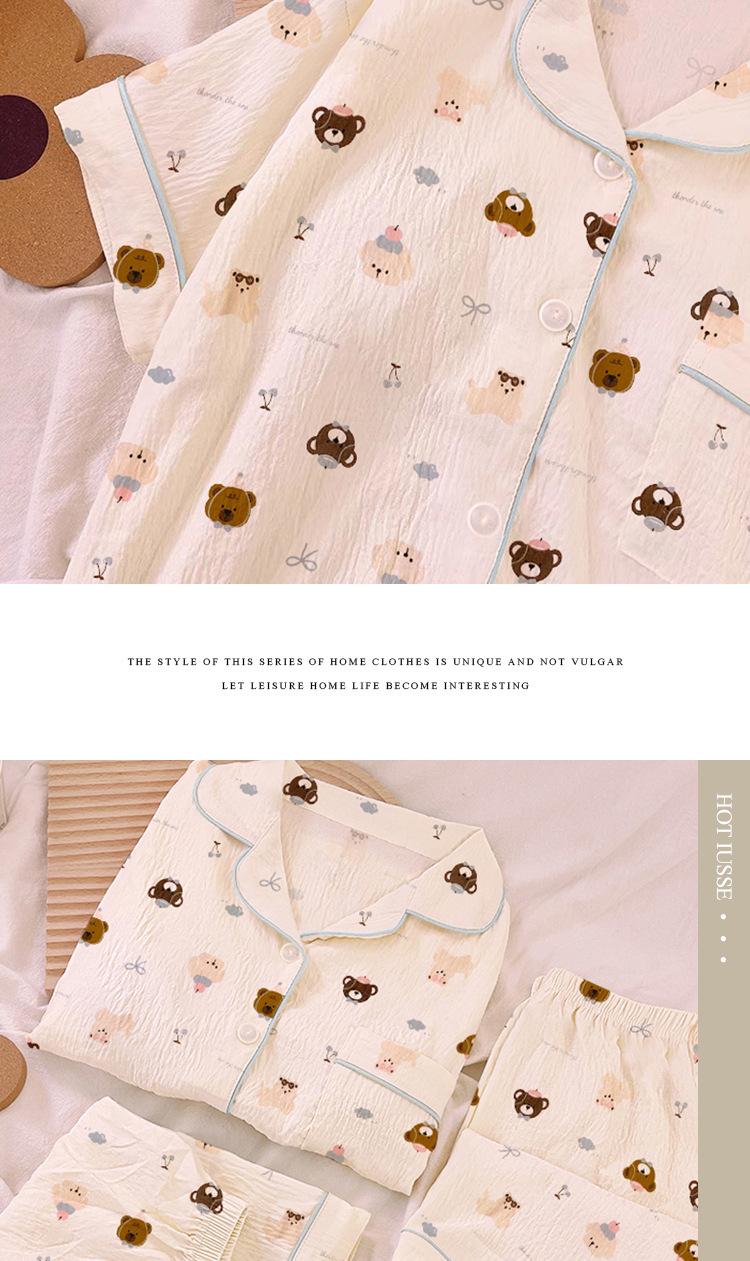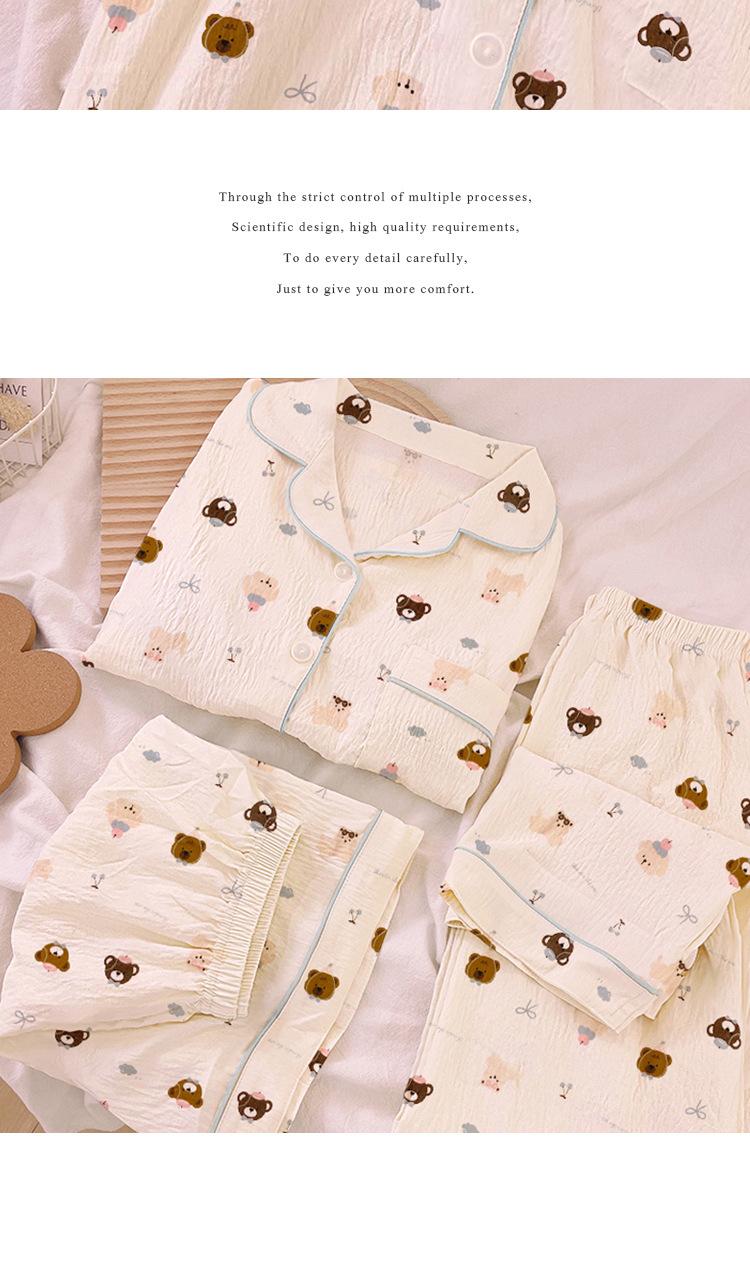 Pijamas de Algodón Nube Japonés para Mujer Verano Manga Corta Dulce Dibujo Animado Primavera y Verano Nuevo Conjunto de Tres Piezas Ropa para el Hogar Foto Real Venta al por Mayor