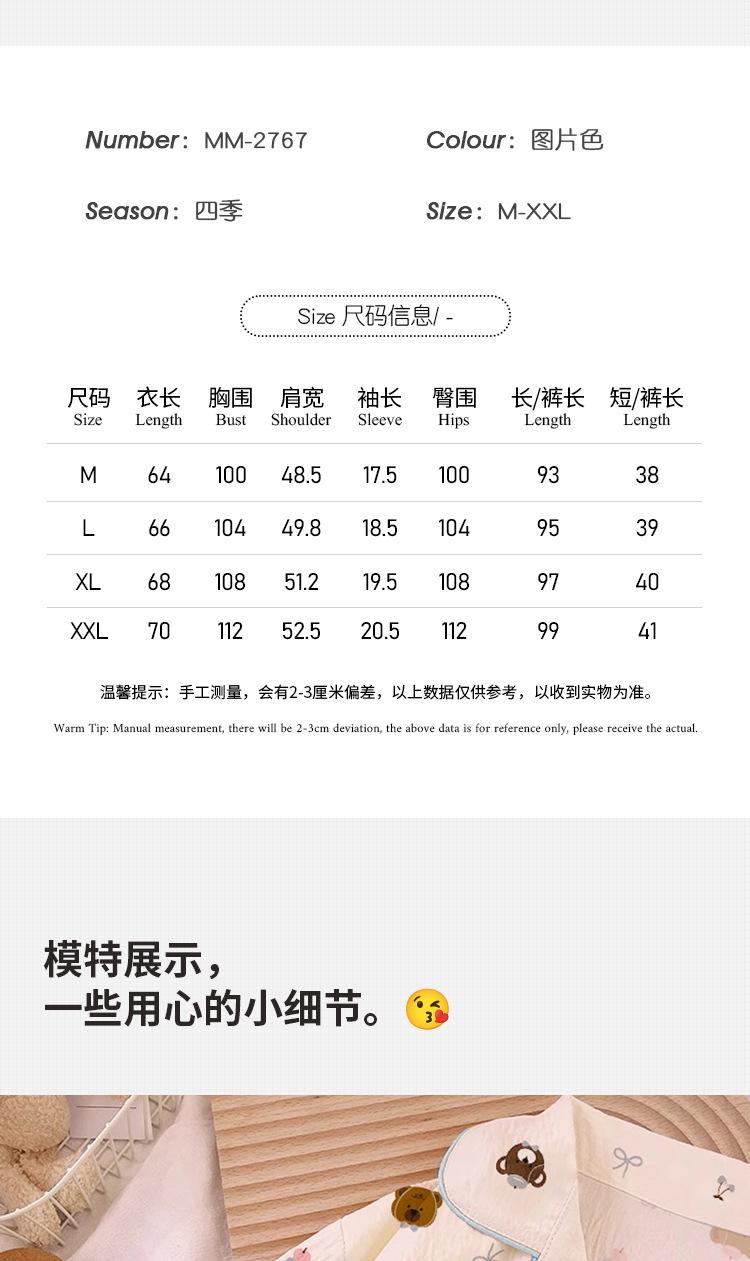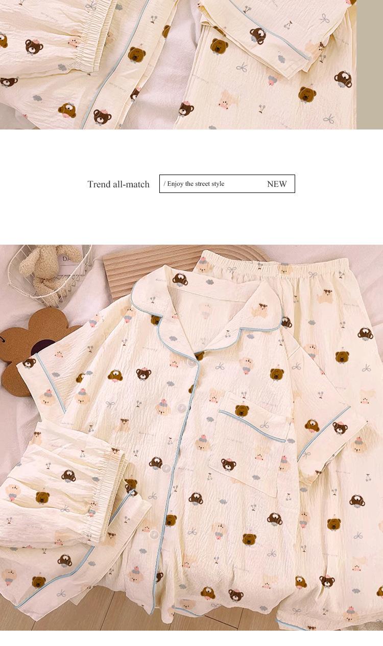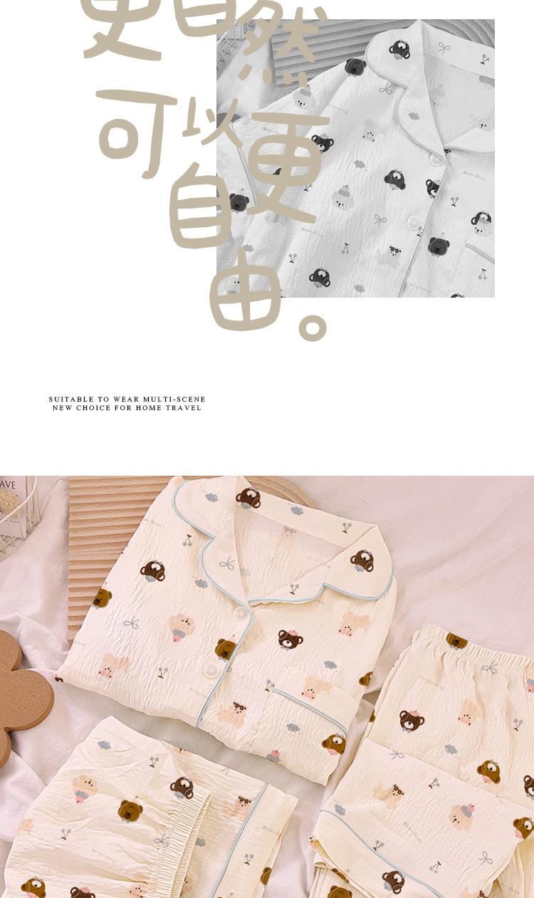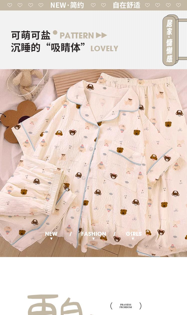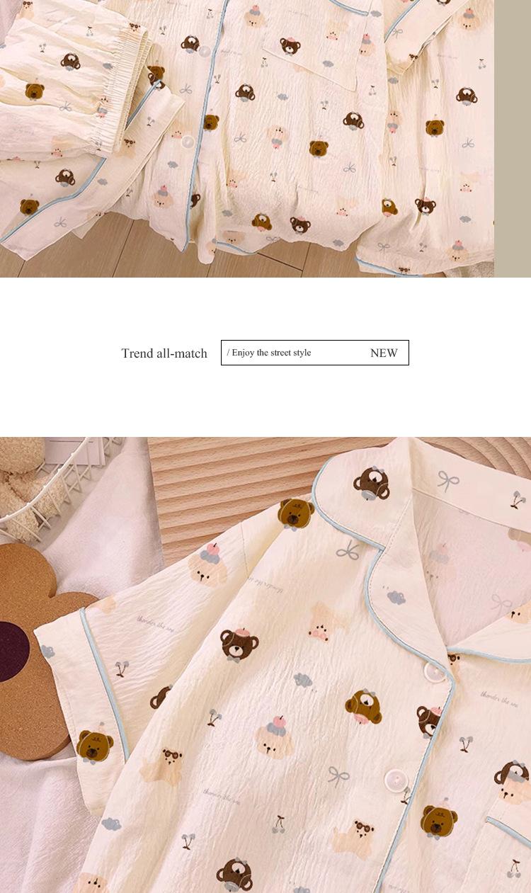Pijamas de Algodón Nube Japonés para Mujer Verano Manga Corta Dulce Dibujo Animado Primavera y Verano Nuevo Conjunto de Tres Piezas Ropa para el Hogar Foto Real Venta al por Mayor