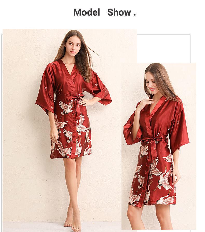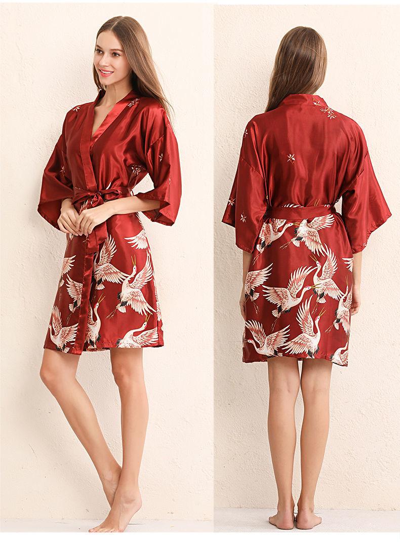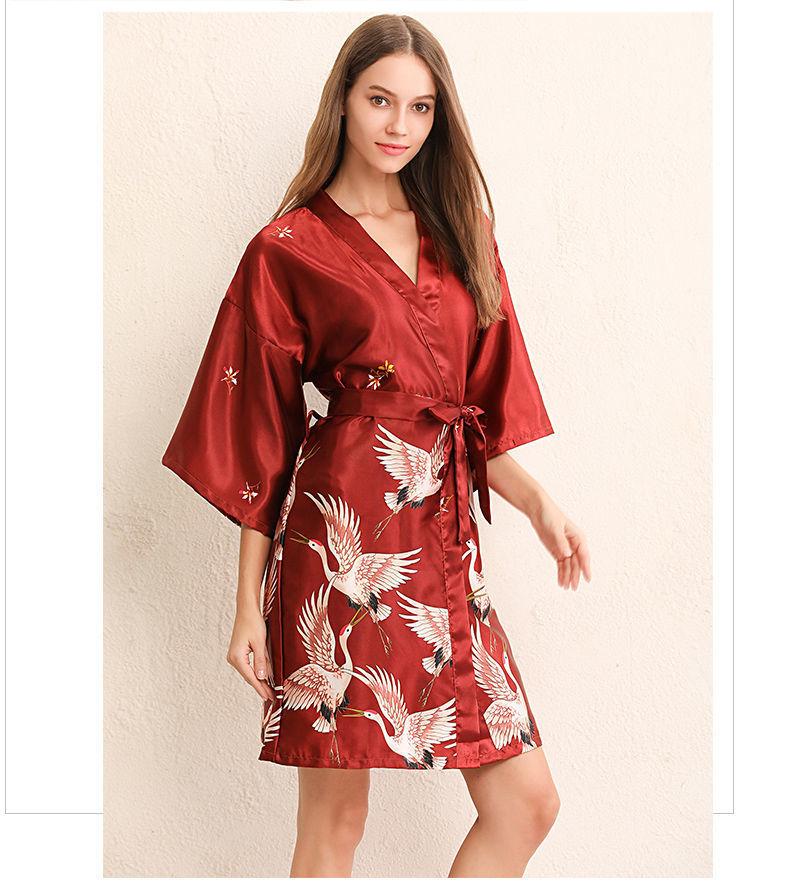 Burgundy nightgown crane style, Coral red nightgown crane style, Flame red nightgown with blue trim, Big red b...