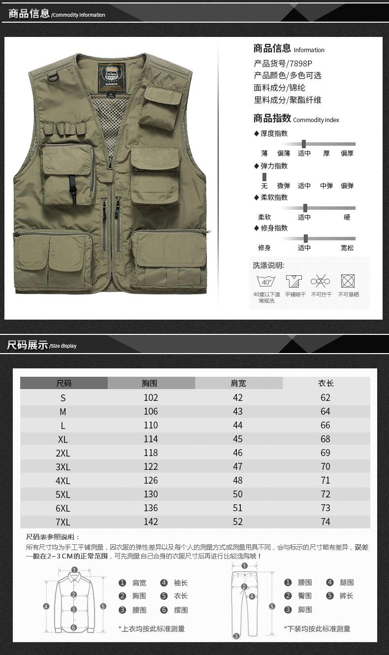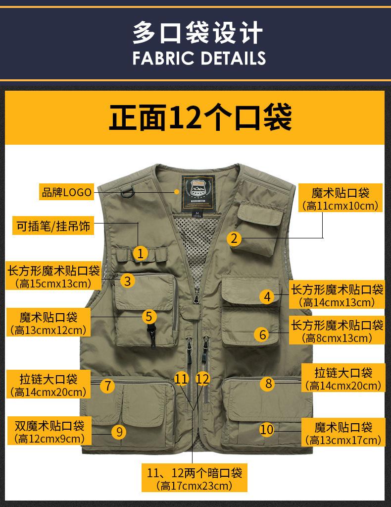 Chaleco para hombre para exteriores con múltiples bolsillos, pesca, fotografía, publicidad, talla grande, set de procesamiento