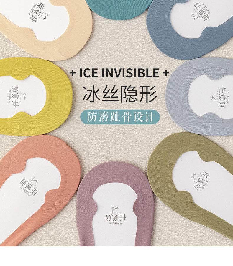 Calcetines Finos de Verano para Mujer Antideslizantes Invisibles, Calcetines de Seda de Hielo, Protección para Dedos de Tacón Alto, Calcetines Invisibles de Corte Bajo, Calcetines de Barco para Mujer