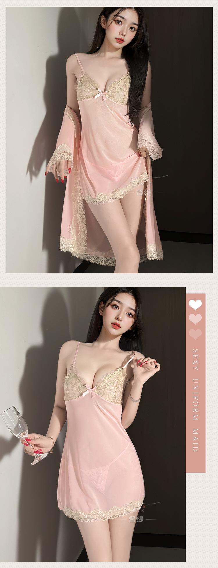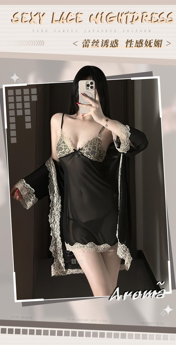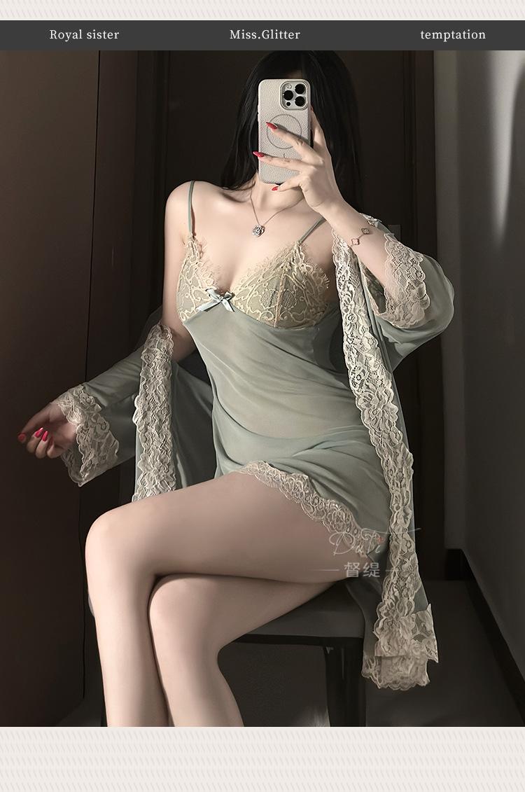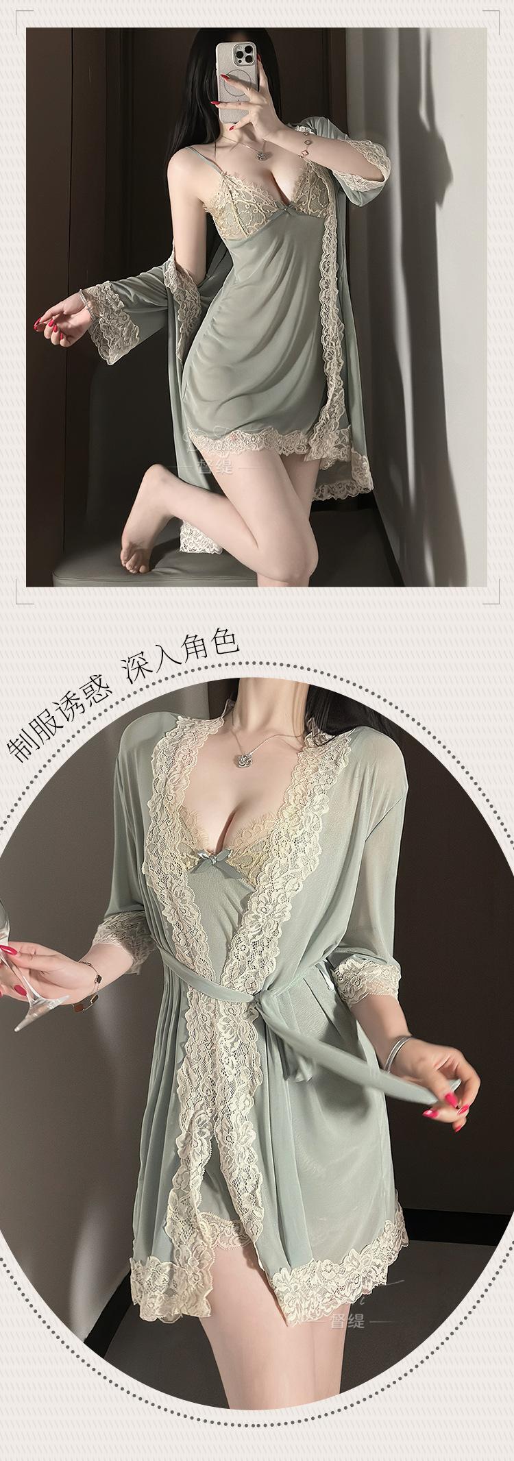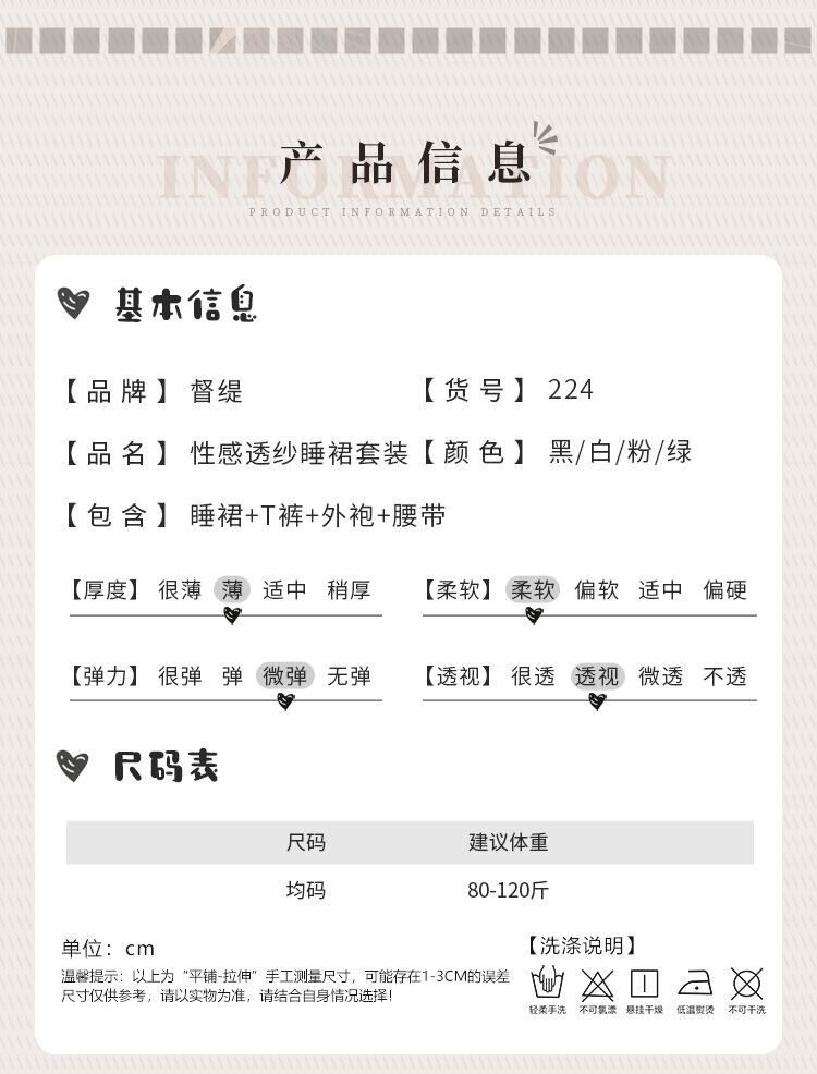 Green (nightgown + robe + belt), Pink (nightgown + robe + belt), Black (nightgown + robe + belt), White (night...