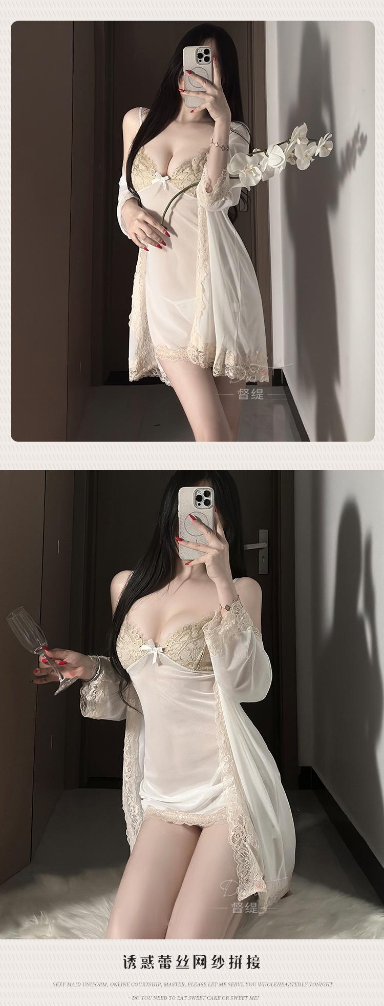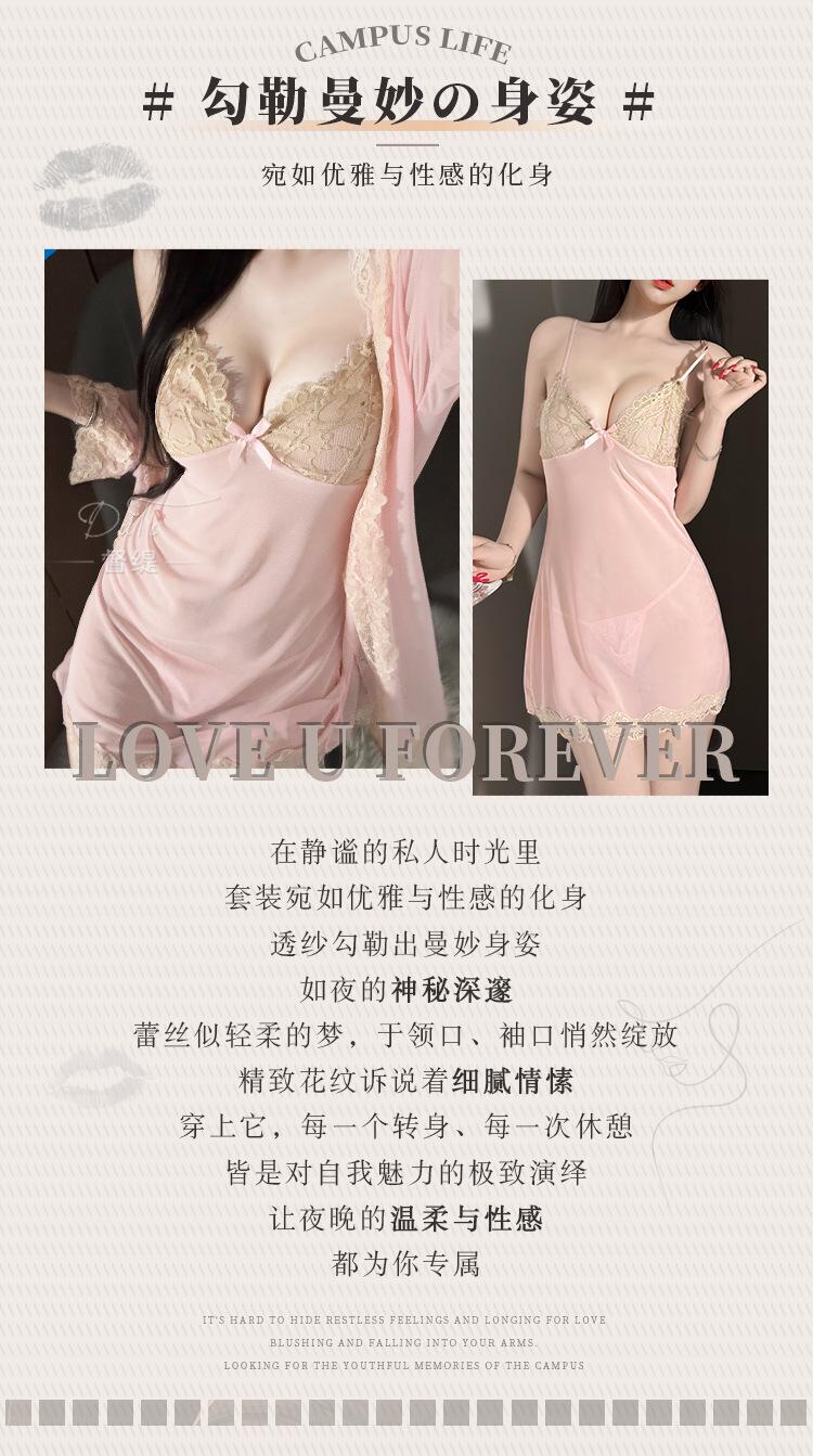 Xianyi Lencería Sexy Deseo Puro Encaje Tentación Escote Profundo Set Camisón Busto Pequeño No Necesita Quitar Ropa de Dormir Sexy Ropa para Cita