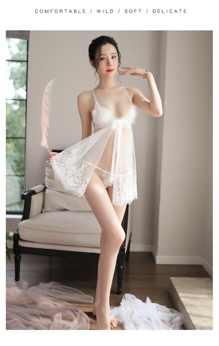 Lencería Sexy Tirantes para Mujer Sexy Transparente Tirantes Encaje Camisón Tentación Frente Abierto No Necesita Quitarse Traje de Pasión Nuevo 1707