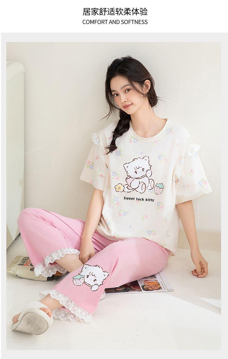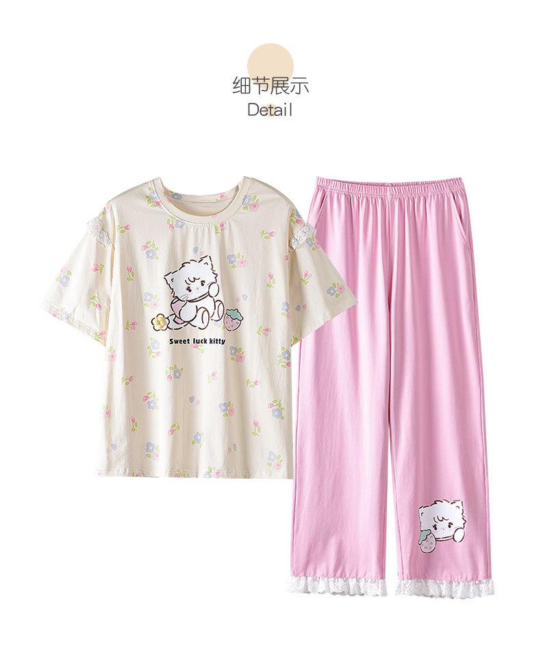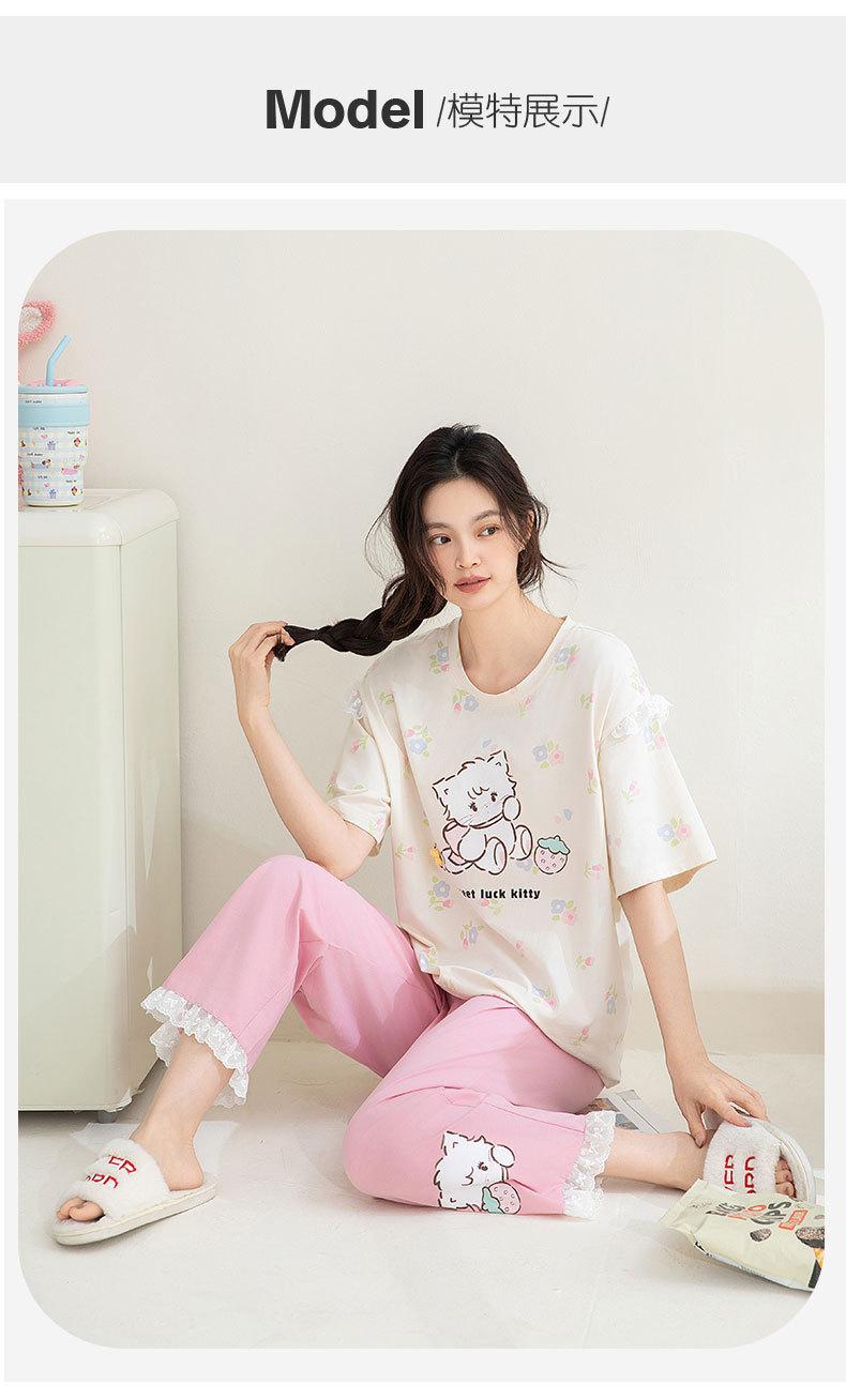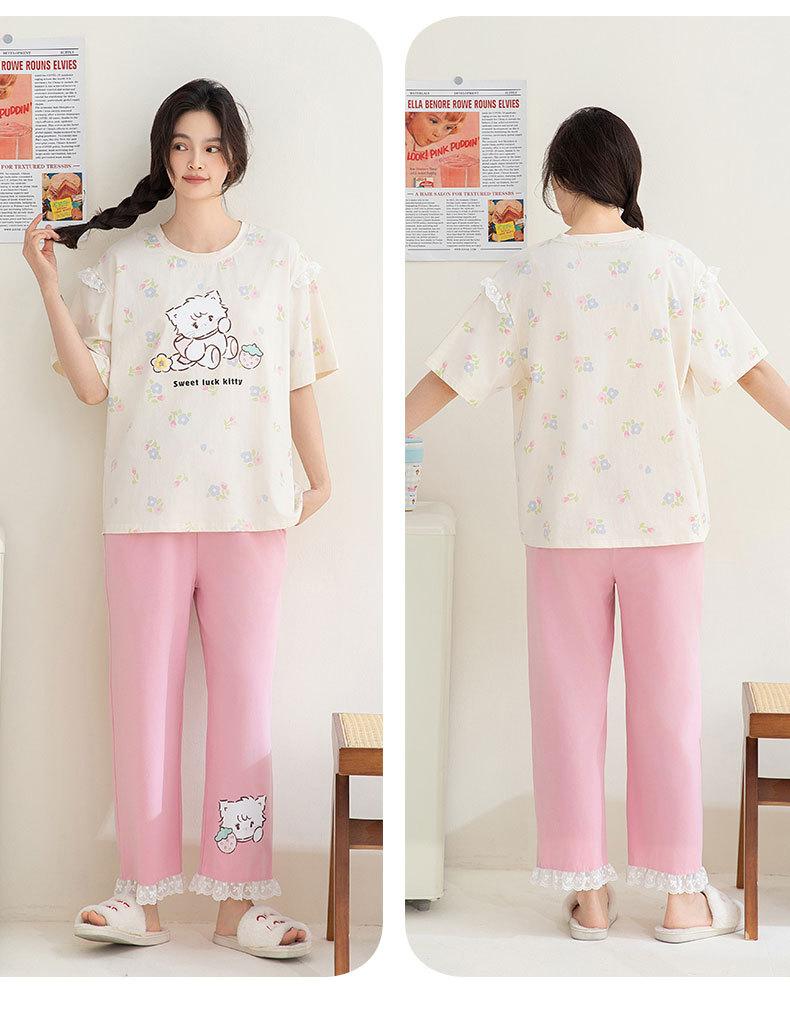 Pijamas para Mujer Verano Pantalones de Manga Corta Algodón Fresco Conjunto de Ropa para el Hogar Lindo Nuevo Estilo de Verano Estilo de Verano para Mujer