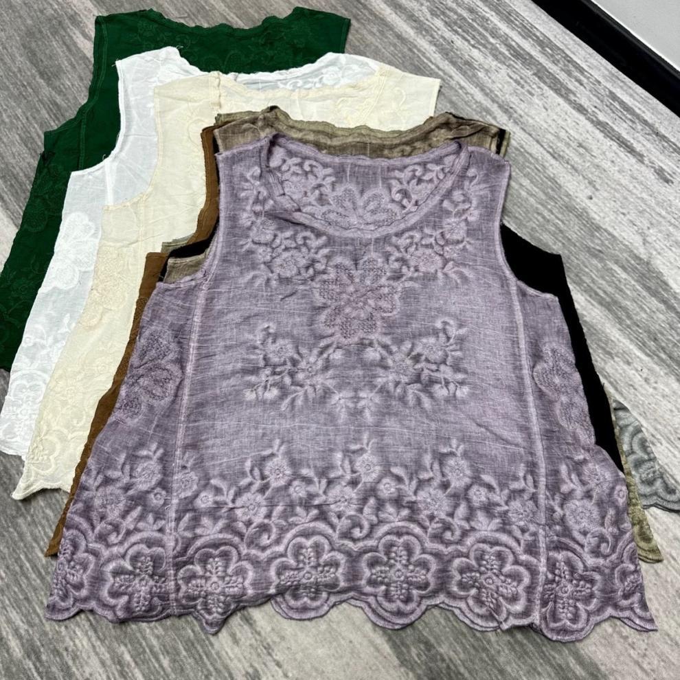 Camiseta sin mangas de color sólido para mujer, producto nuevo de verano, top de crochet hueco de algodón puro, camiseta sin mangas para mujer, estilo literario coreano, holgada, camisola t