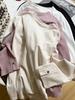 Playera de Algodón con Puño Abotonado y Cuello Redondo de Manga Larga para Mujer Primavera 2025 Nueva Holgada Adelgazante Color Sólido Camiseta Base Interior