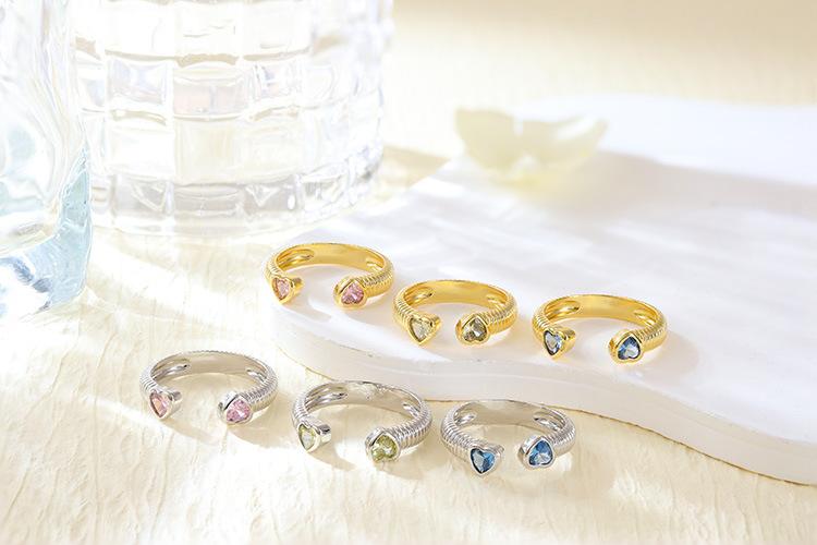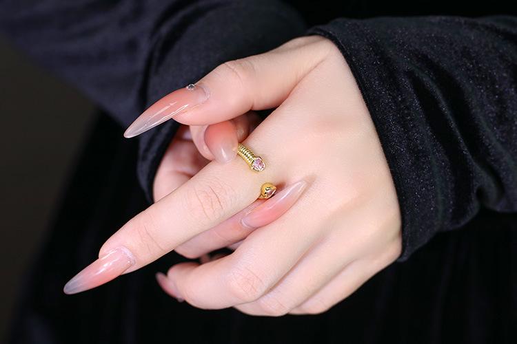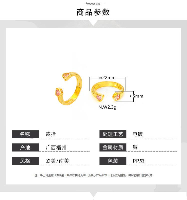 Anillo de Amor Europeo y Americano Vintage con Incrustaciones de Micro-circonitas para Mujer Ins Sencillo Moda Apertura Ajustable Cobre Chapado Oro Real