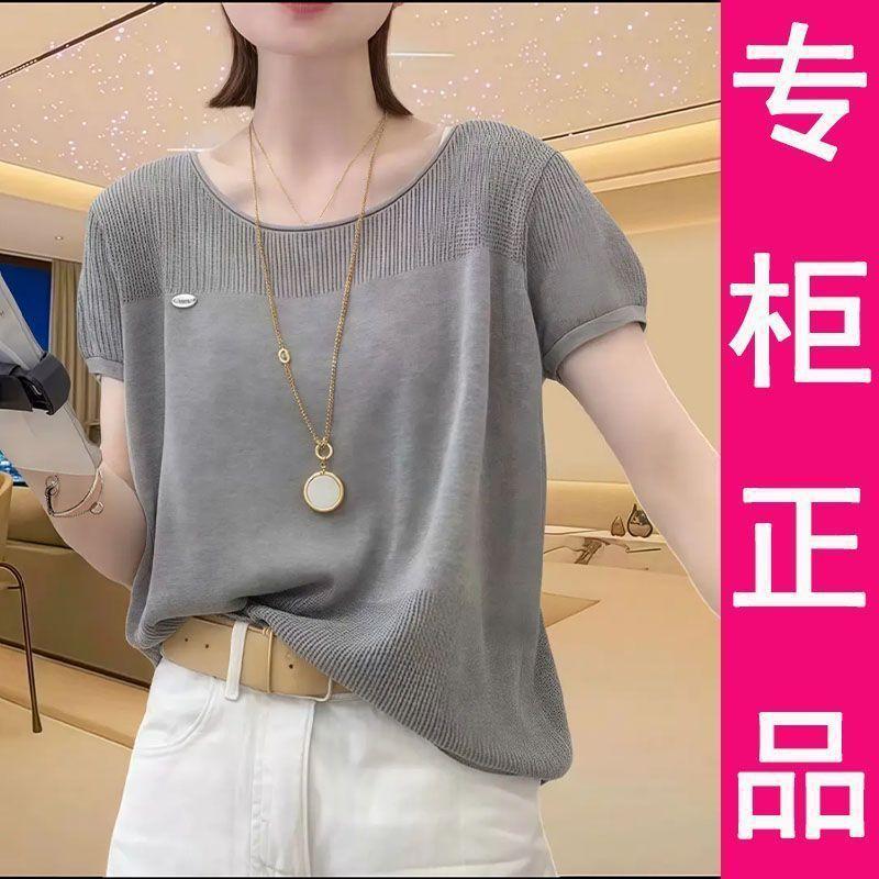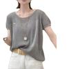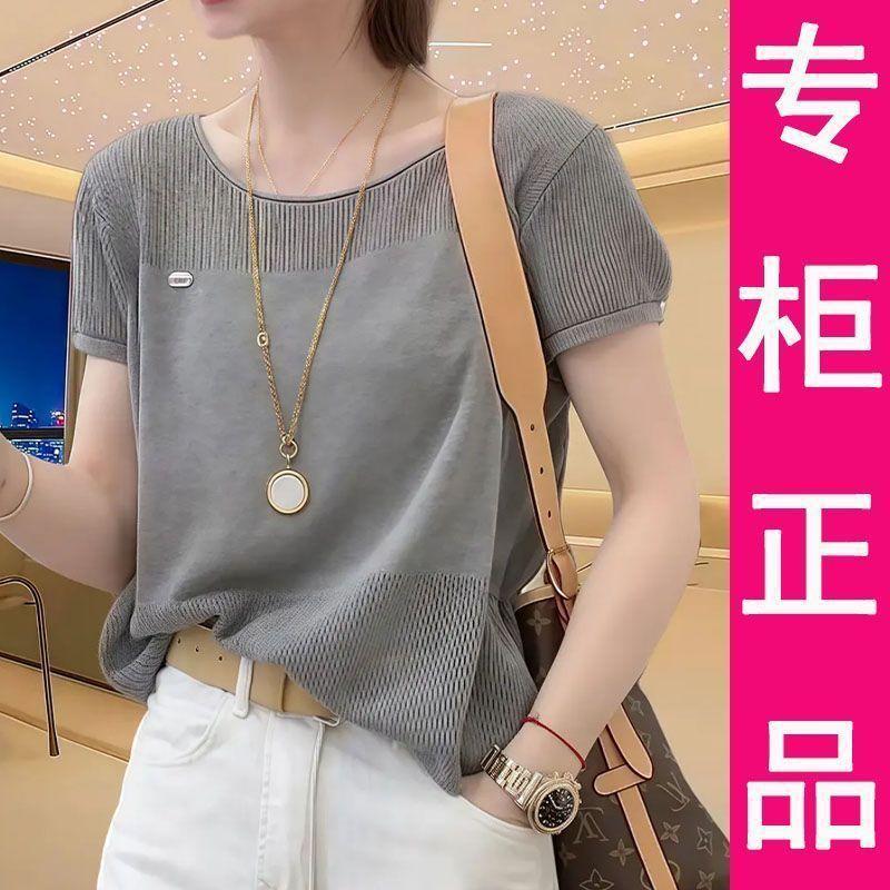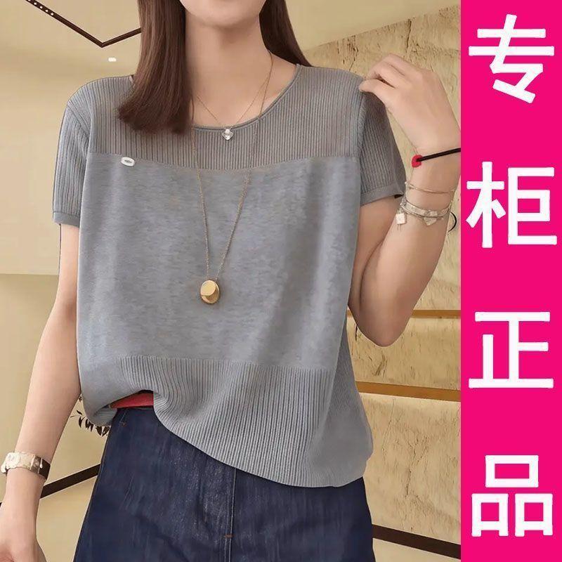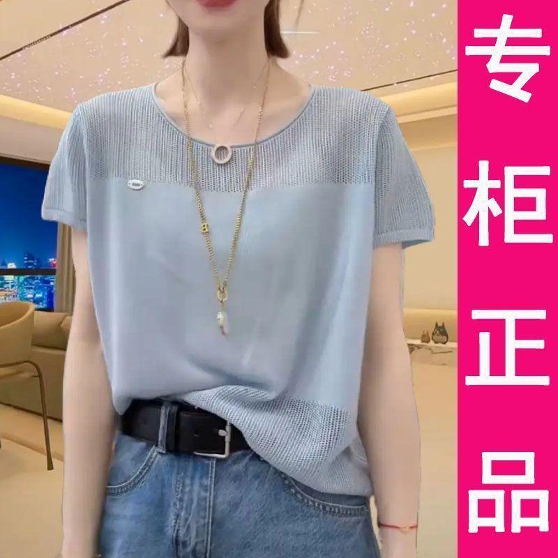 Verano Nuevo Suéter Calado de Manga Corta para Mujer Casual Color Sólido Adelgazante Estilo Holgado Top Fino Camisa