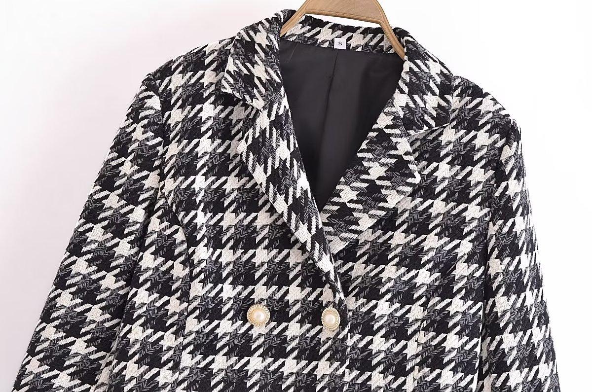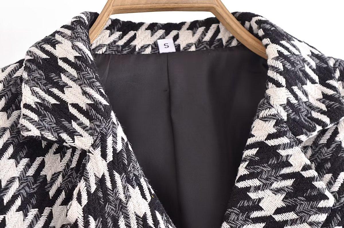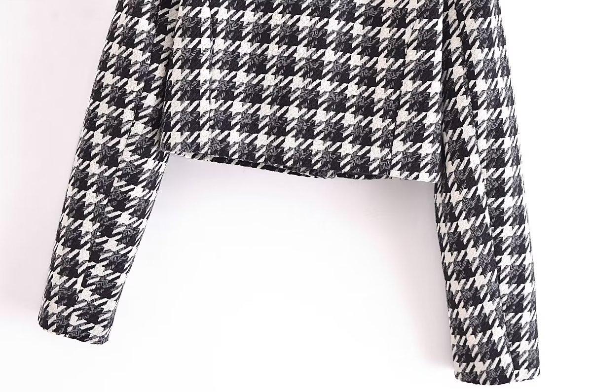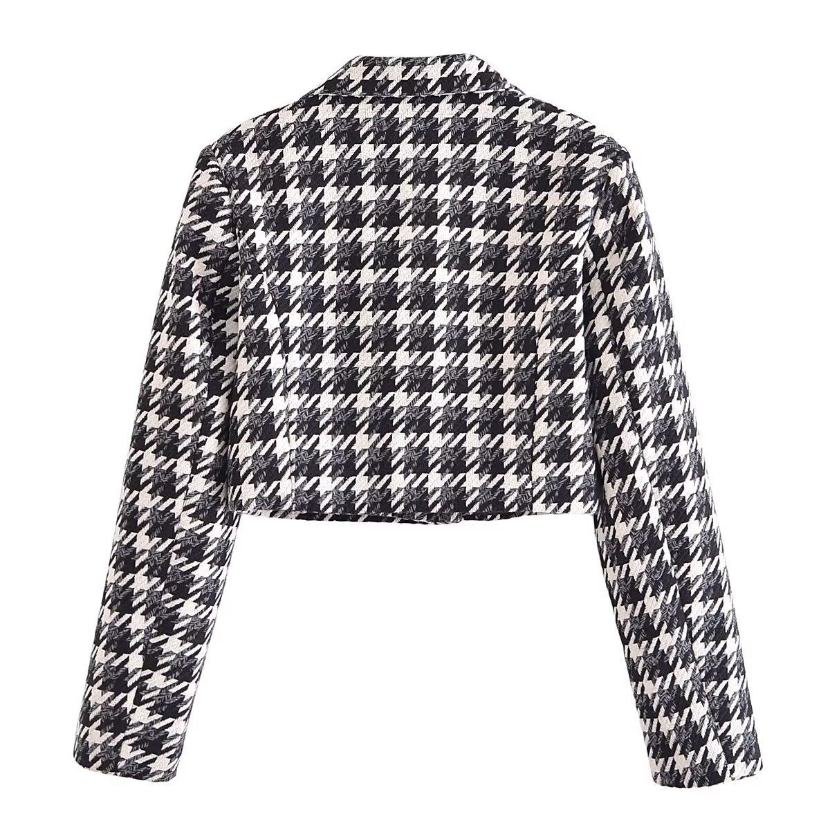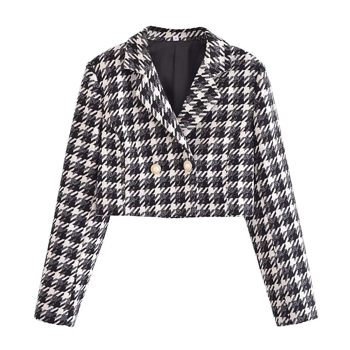 Chaqueta pata de gallo nueva de otoño 2023 al por mayor europea y americana, top corto cruzado E10-1230
