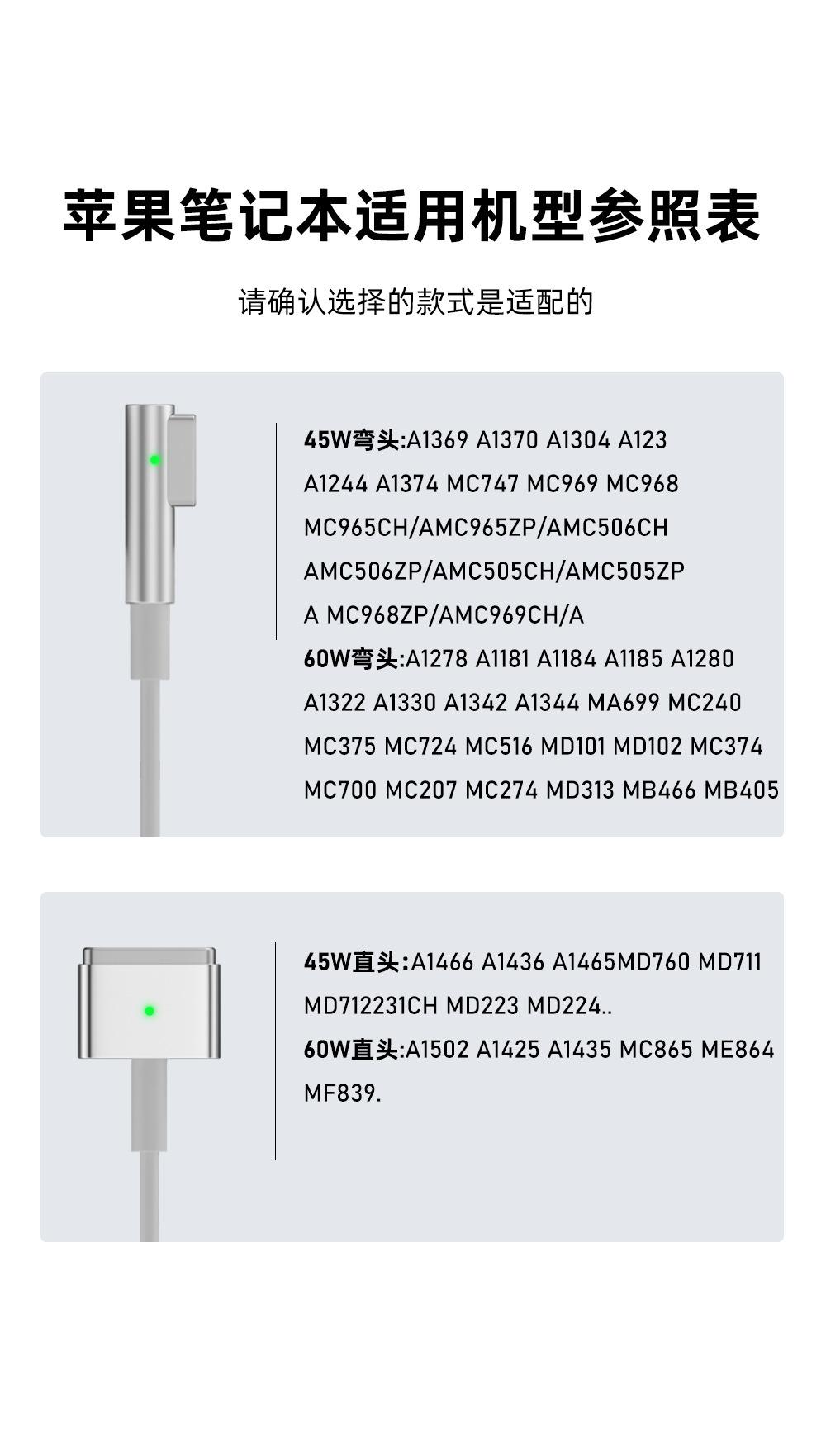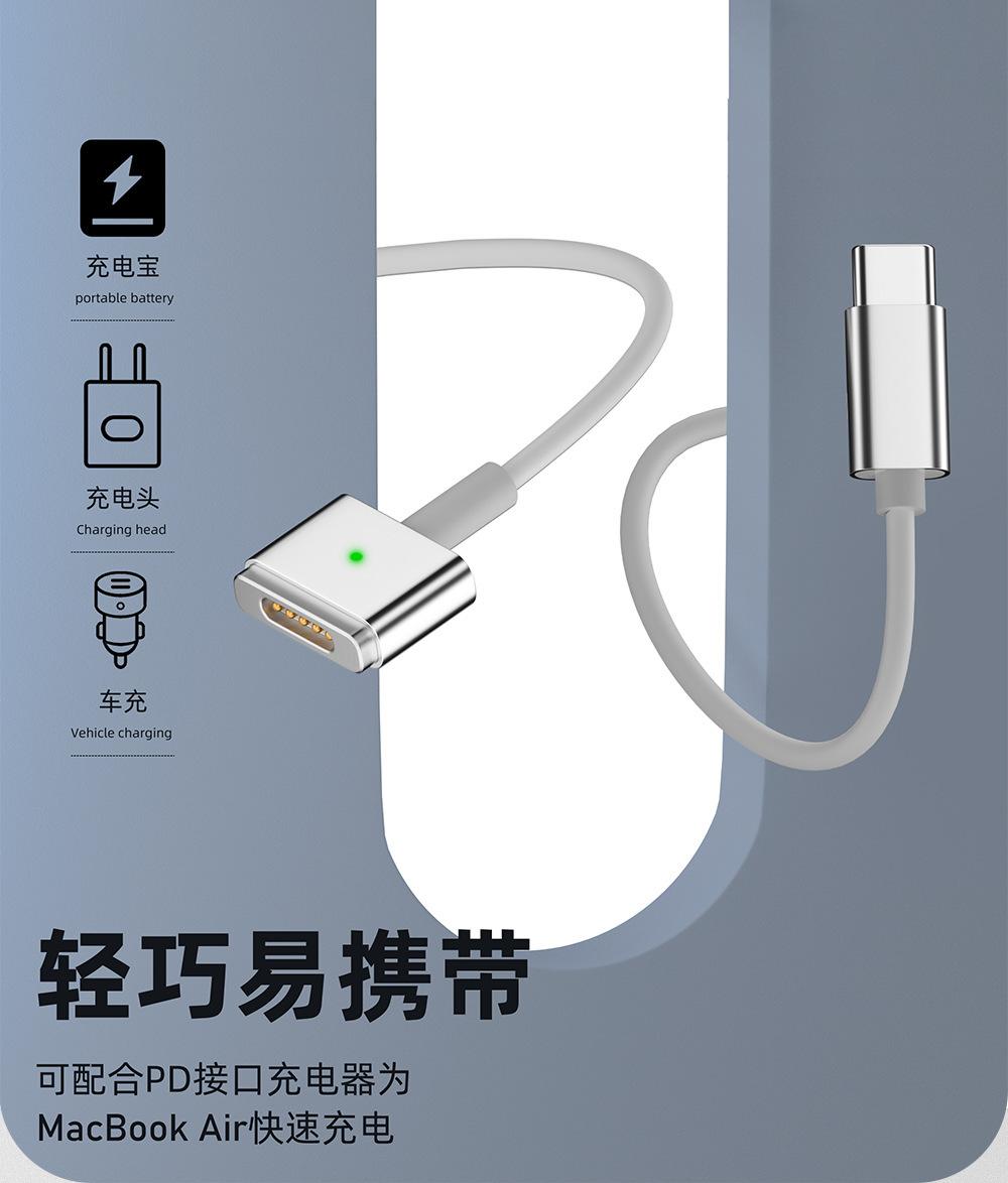 Type-c to magsafe1-l head 65w, Type-c to magsafe2-t head 65w, Type-c to magsafe1-l head 100w, Type-c to magsafe2-t head 100w