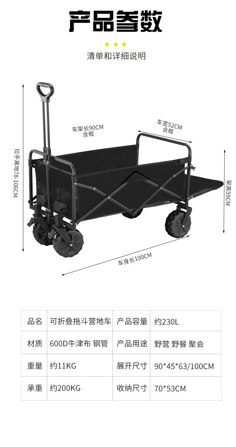 Carro de Camping Plegable para Exterior de Gran Tamaño Carro Trolley para Picnic Mesa de Tablero Carro de Campamento Remolque