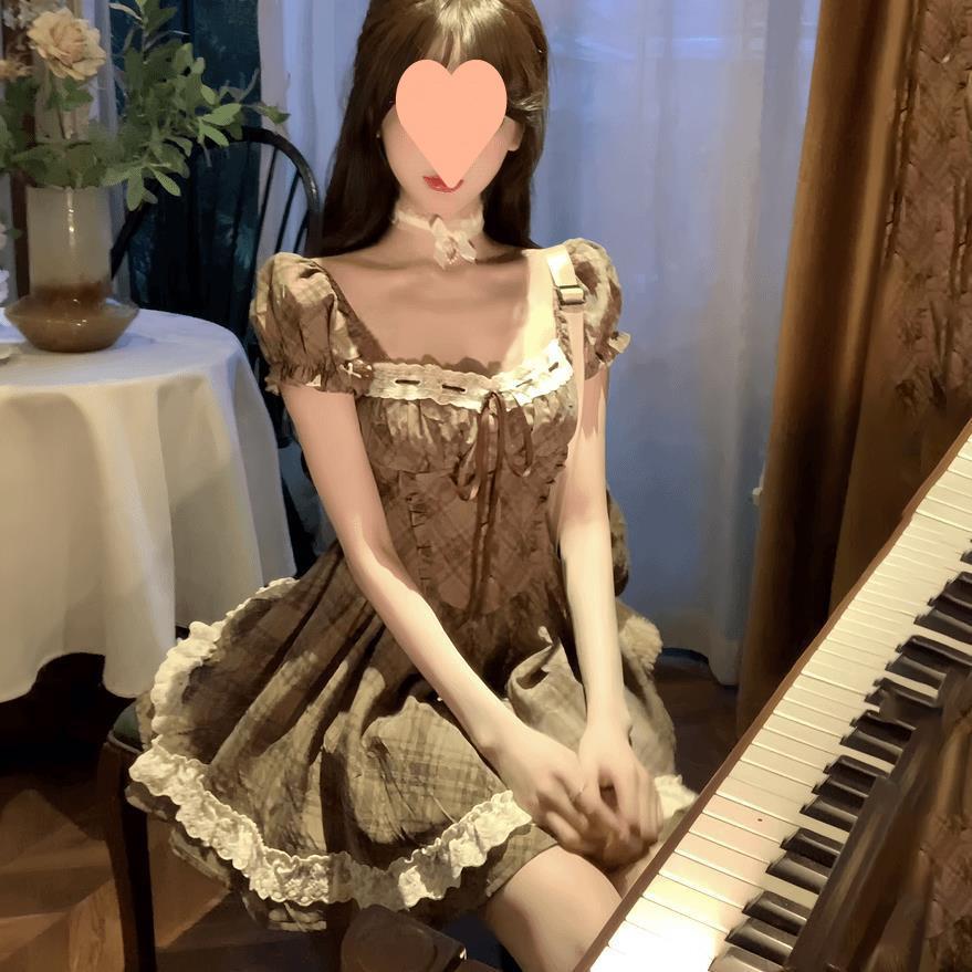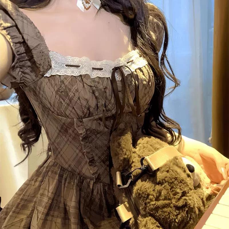 Vestido de Verano para Mujer, Estilo Corto, Estilo Pure Lust, Chica Dulce y Linda, Falda de Manga Farol Francesa, de Alta Gama