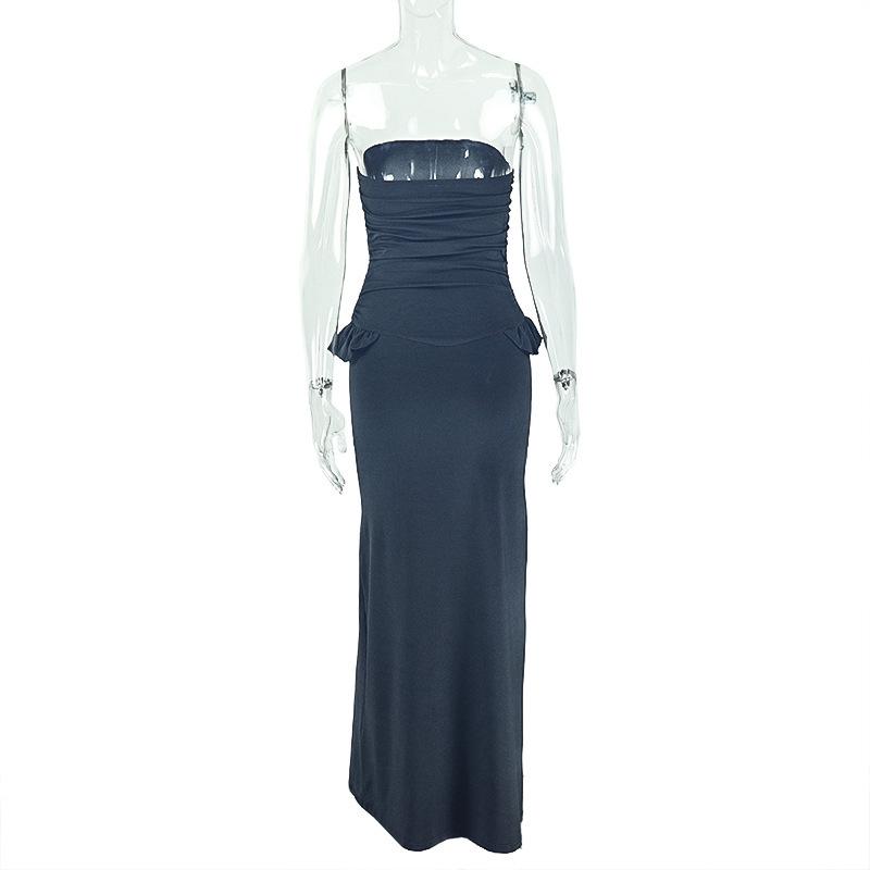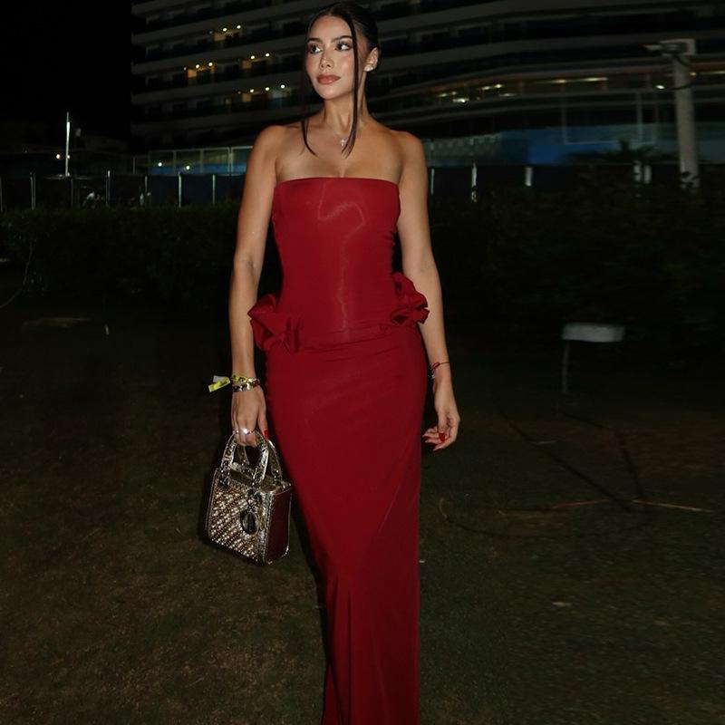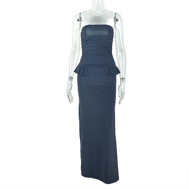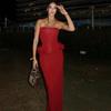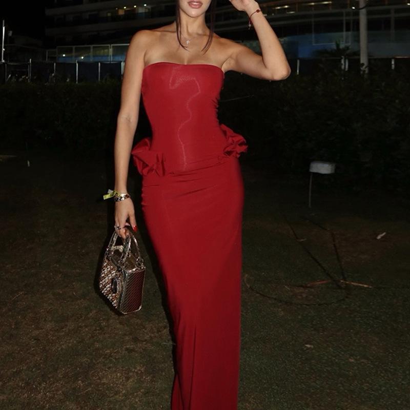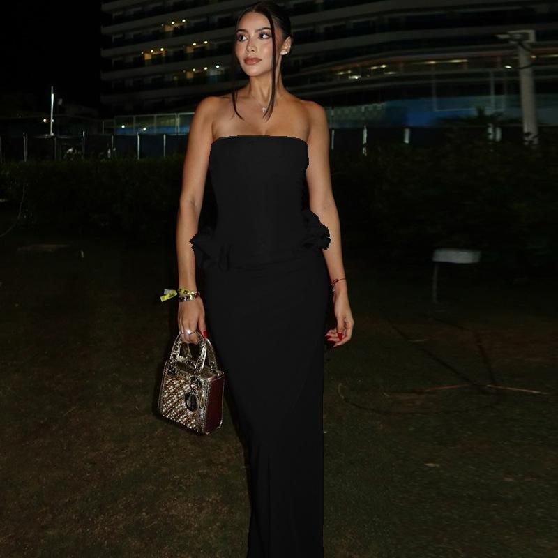 Europeo y Americano 2025 Cruzado Sin Tirantes Color Sólido para Mujer Diseño Ajustado Falda Bodycon Vestido Elegante de Gala