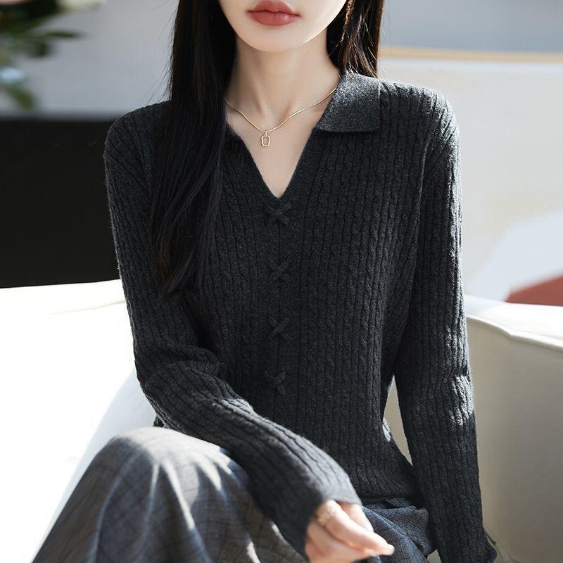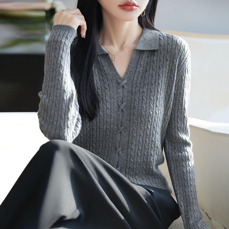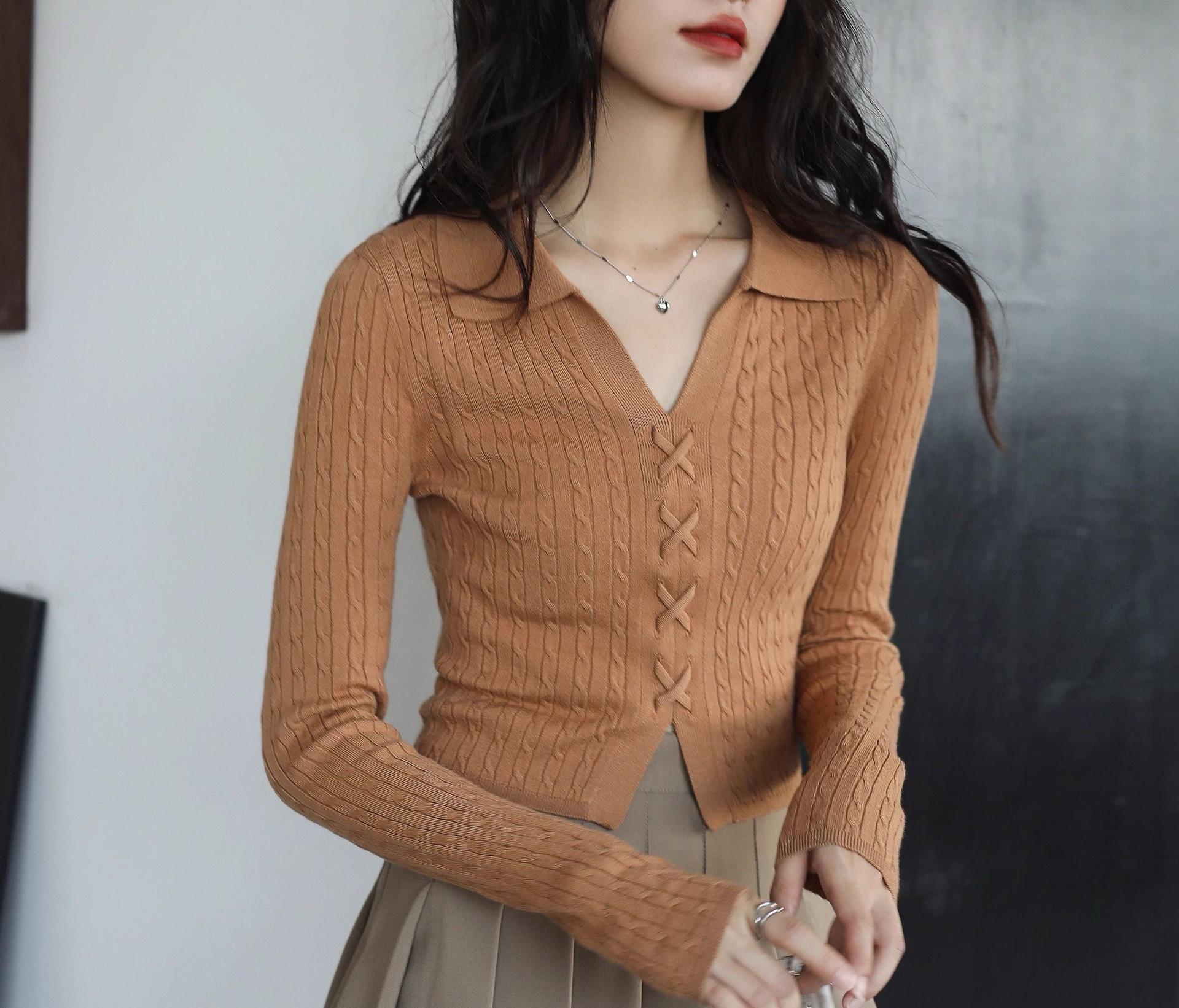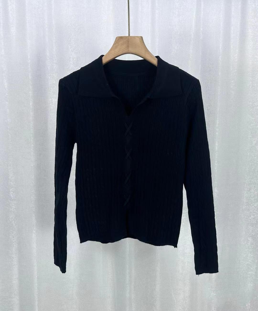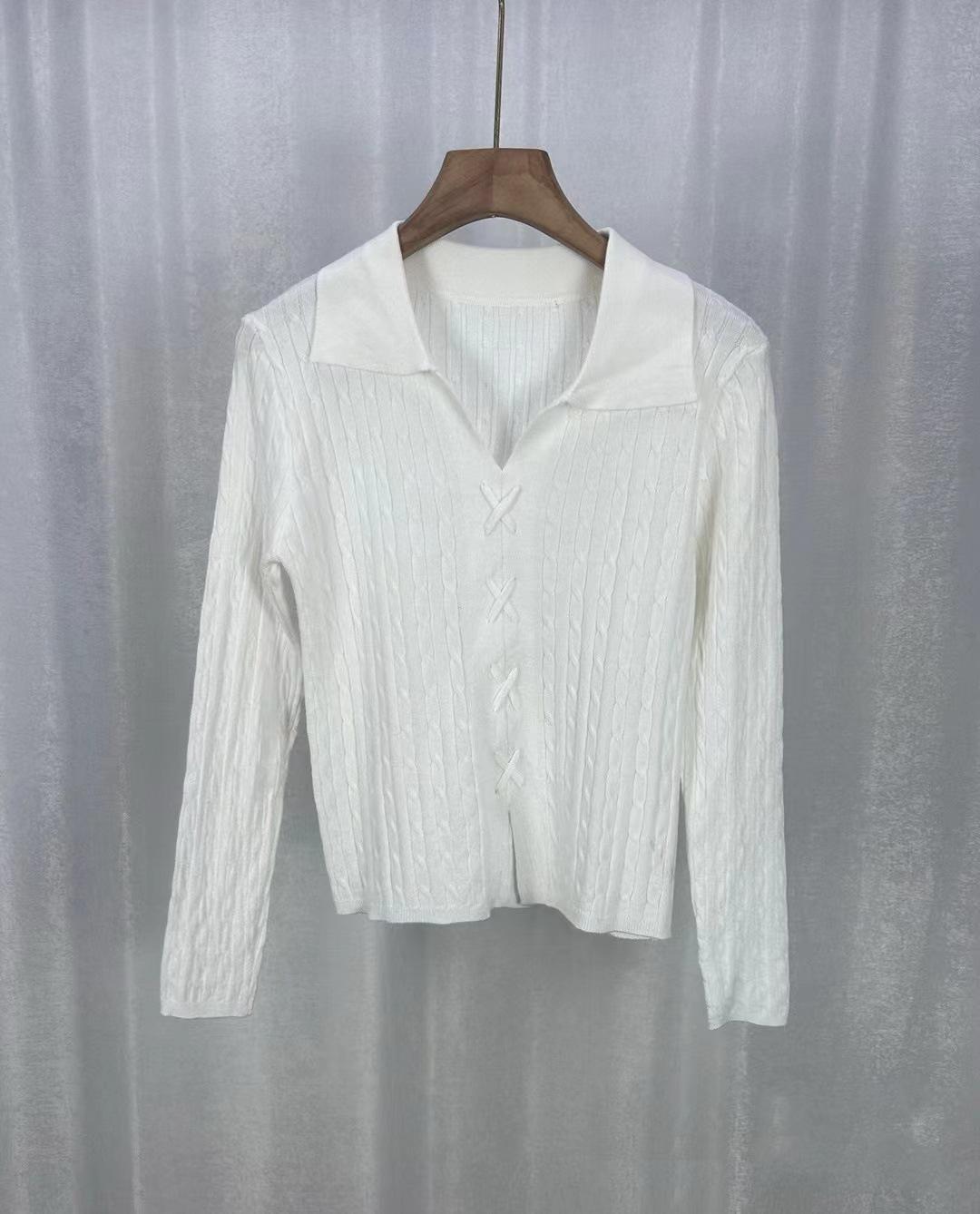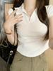 Camiseta Delgada de Verano para Mujer Blanca Ajustada Camisa Polo Lar Color Sólido Camiseta de Punto Manga Corta Ajustada Estilo Coreano Top para Mujer