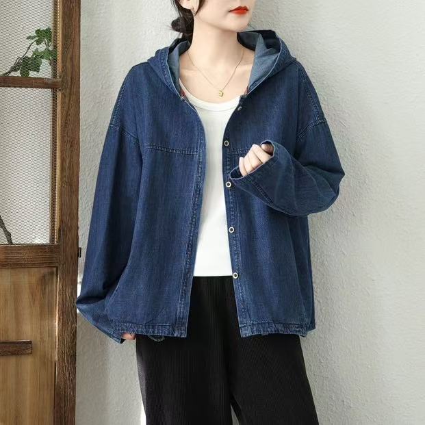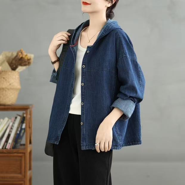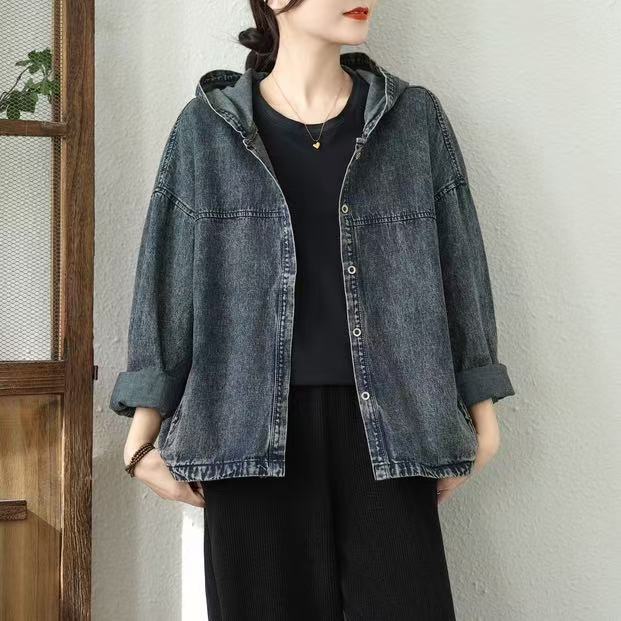 Chaqueta de mezclilla Primavera 2025 Chaqueta holgada casual estilo coreano con capucha Chaqueta de mezclilla ajustada Chaqueta estilo universitario