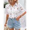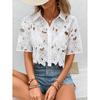 Moda de Encaje Transfronteriza para Mujeres Europeas y Americanas Versátil Elegante Camisa Tops Casual Vacaciones Fiesta Camisa Calada