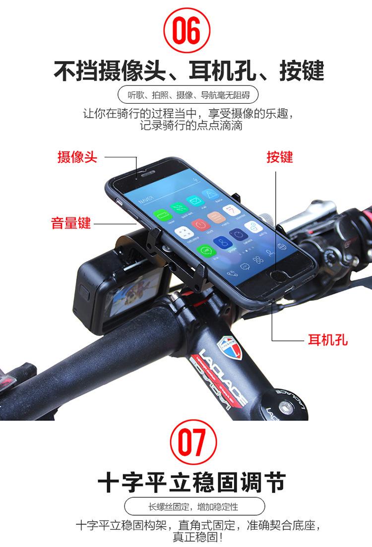 Introducción: Se puede instalar fácil y rápidamente en el manillar o en la parte delantera de la bicicleta, lo que le permite disfrutar fácilmente de la música cuando conduce al aire libre, y también puede navegar para mostrarle el camino. Soporta la instalación de cámaras deportivas, es estable y firme, y la hebilla de cuatro garras facilita la fijación del teléfono. Tiene tornillos antirrobo mejorados y es más seguro de usar.