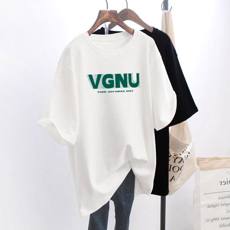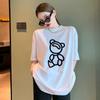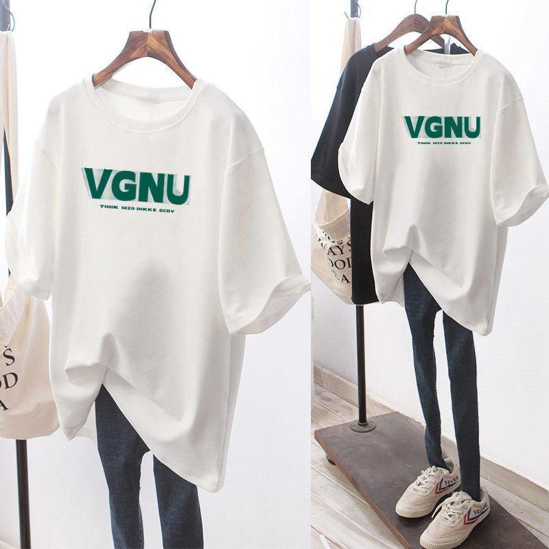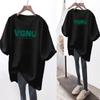 Camiseta Blanca para Mujer 2025 Verano Nuevo Estilo Coreano Holgada Largo Medio Casual Camiseta con Letras Top de Manga Corta para Mujer Moderno