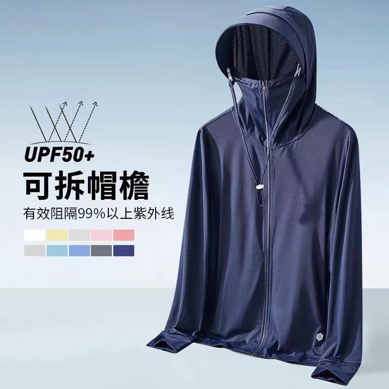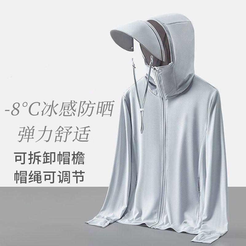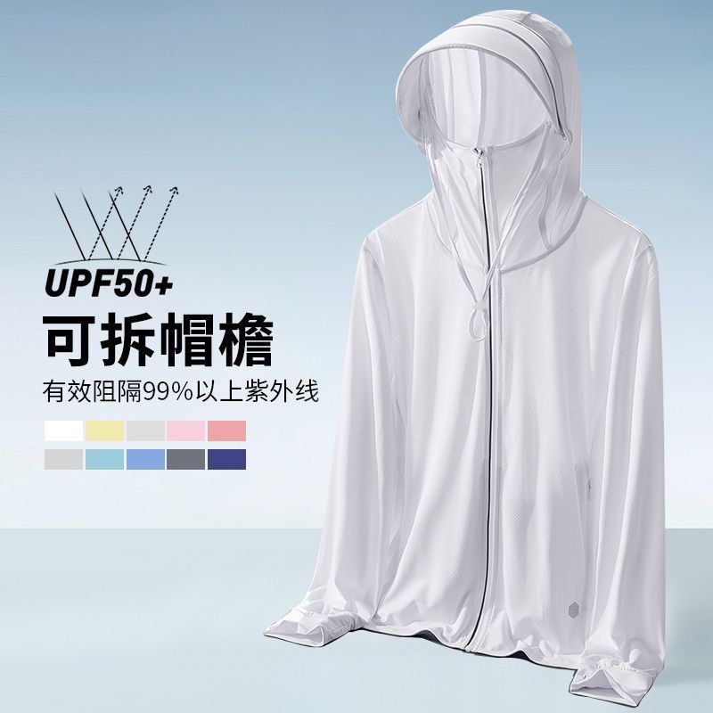 Ropa Casual de Verano para Protección Solar para Mujer, Chaqueta con Capucha para Protección Solar, Ropa Fina Anti-UV de Seda Helada para Protección Solar para Hombre, Sensación Fresca