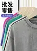 Camiseta Lavada de 230g Personalizada Color Puro Camisa Cultural DIY Negro Desgastado Algodón Puro Manga Corta Estampada Logo Bordado Transfronteriza