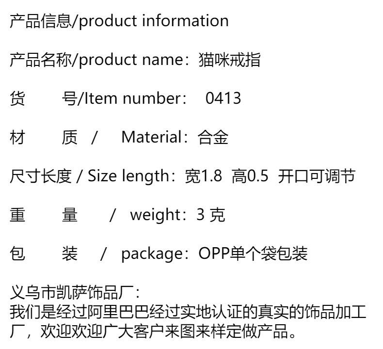 | Anillo de nudillo geométrico de aleación europea y americana para cubrir la uña, joyería de mano, anillo de articulación abierto ajustable, joyería femenina, ventas de fábrica | ¥2.50 84 artículos vendidos | | | | Anillo nuevo de serpiente negro transfronterizo europeo y americano geométrico abierto ajustable joyería femenina ventas de fábrica | ¥1.68 0 artículos vendidos | | | | Nuevos productos transfronterizos Juego de anillos cruzados geométricos europeos y americanos de apertura ajustable joyería femenina ventas de fábrica | ¥2.80 0 artículos vendidos | | | | Nuevas cruces de aleación europeas y americanas transfronterizas, la fe vence el miedo, anillo abierto ajustable, ventas del fabricante | ¥2.00 54 artículos vendidos | | |