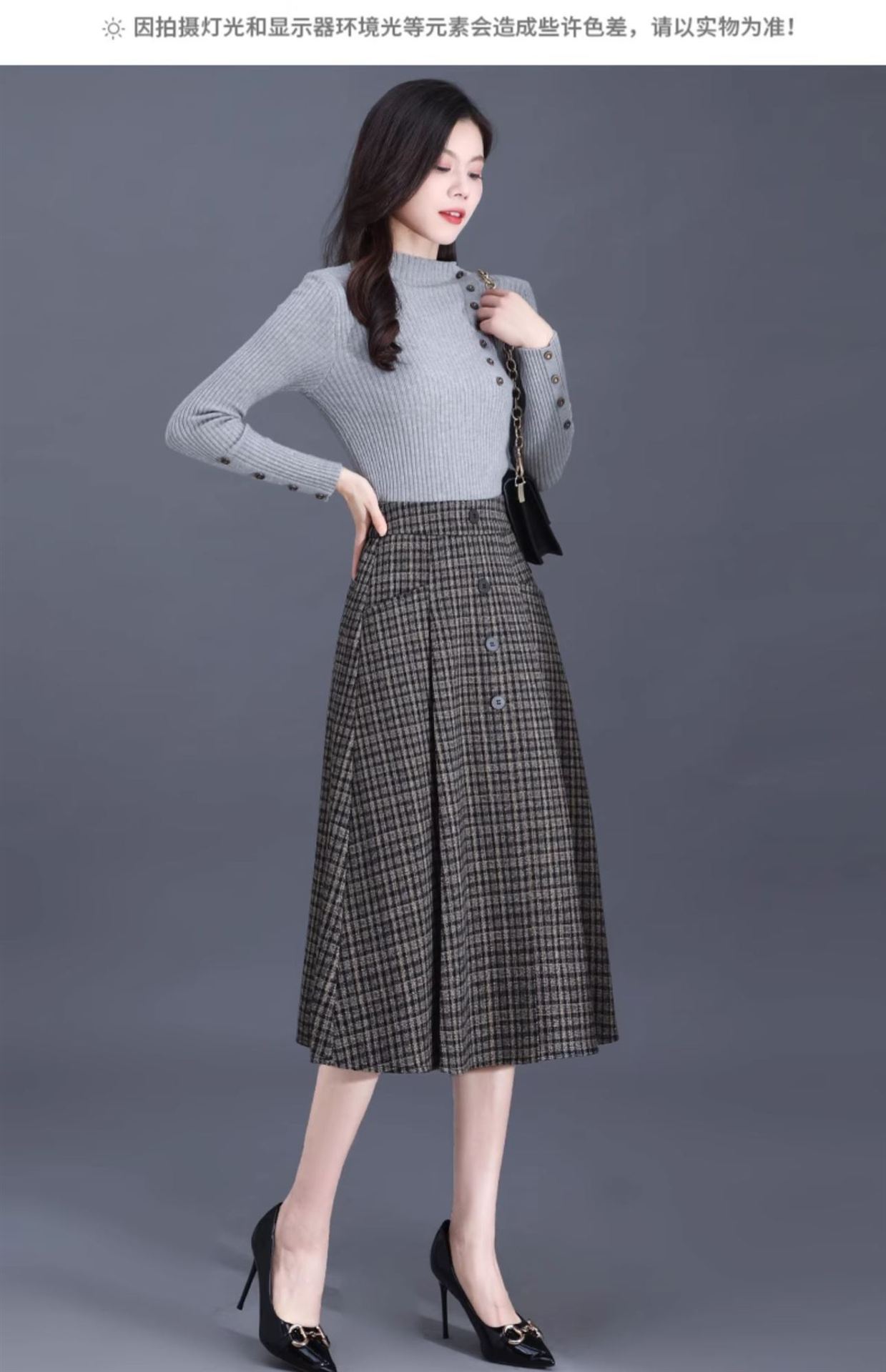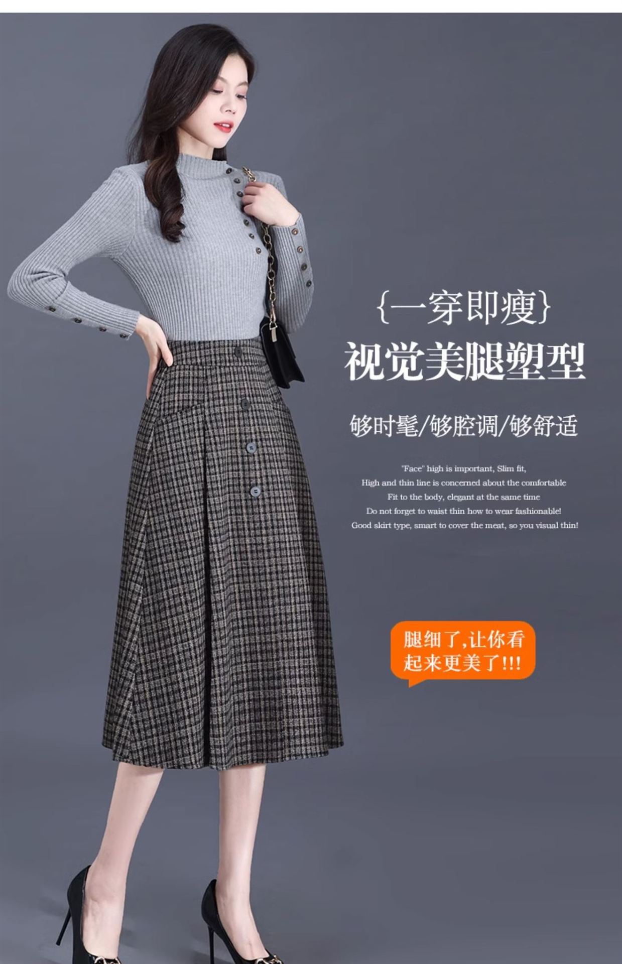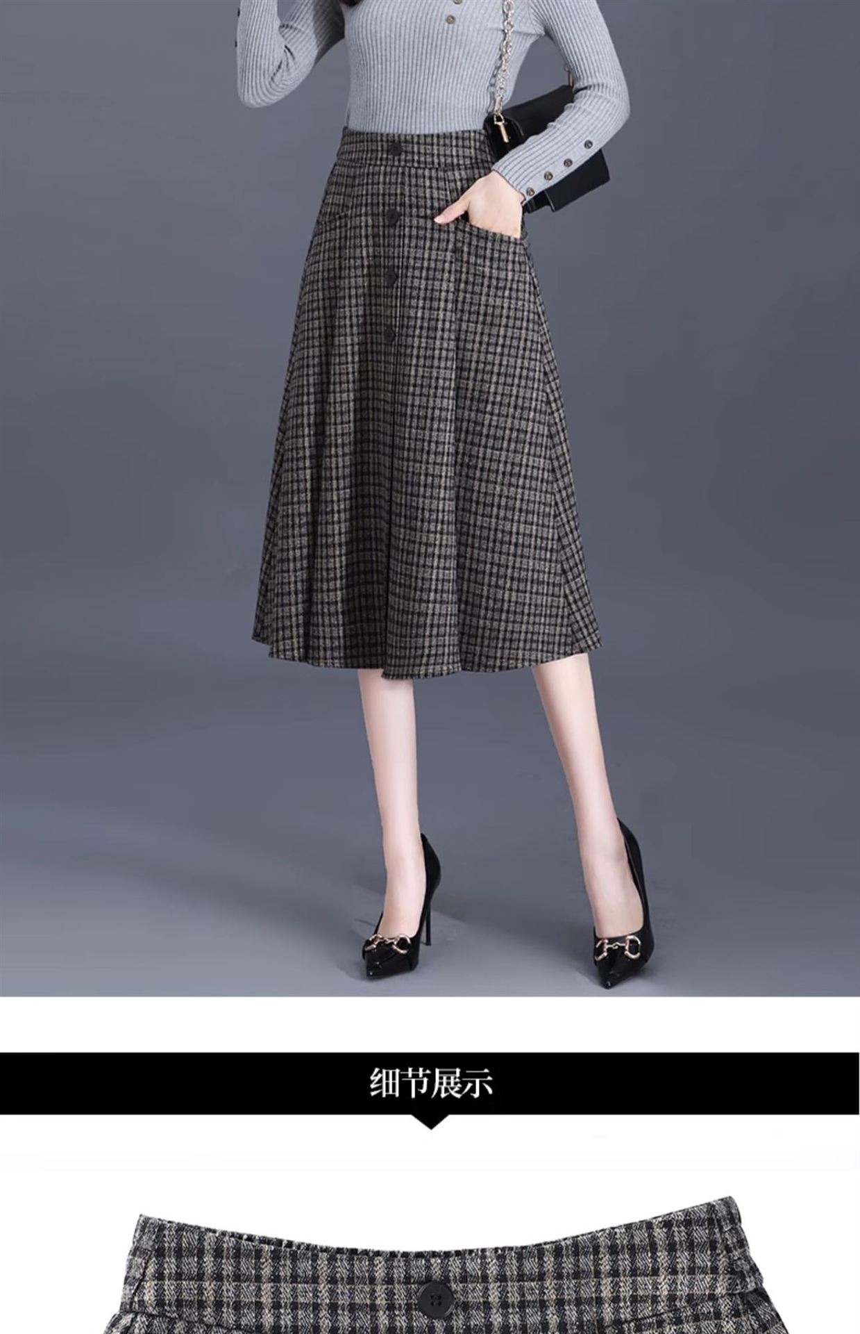 Falda acampanada Largo medio Moderna Falda que combina con todo Otoño e Invierno 2025 Nueva Adelgazante Lana Cuadros Casual Falda Paraguas