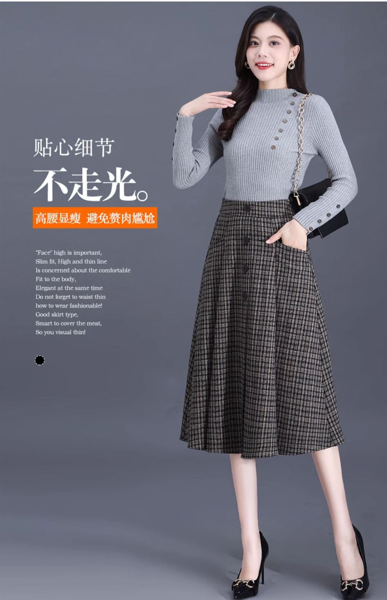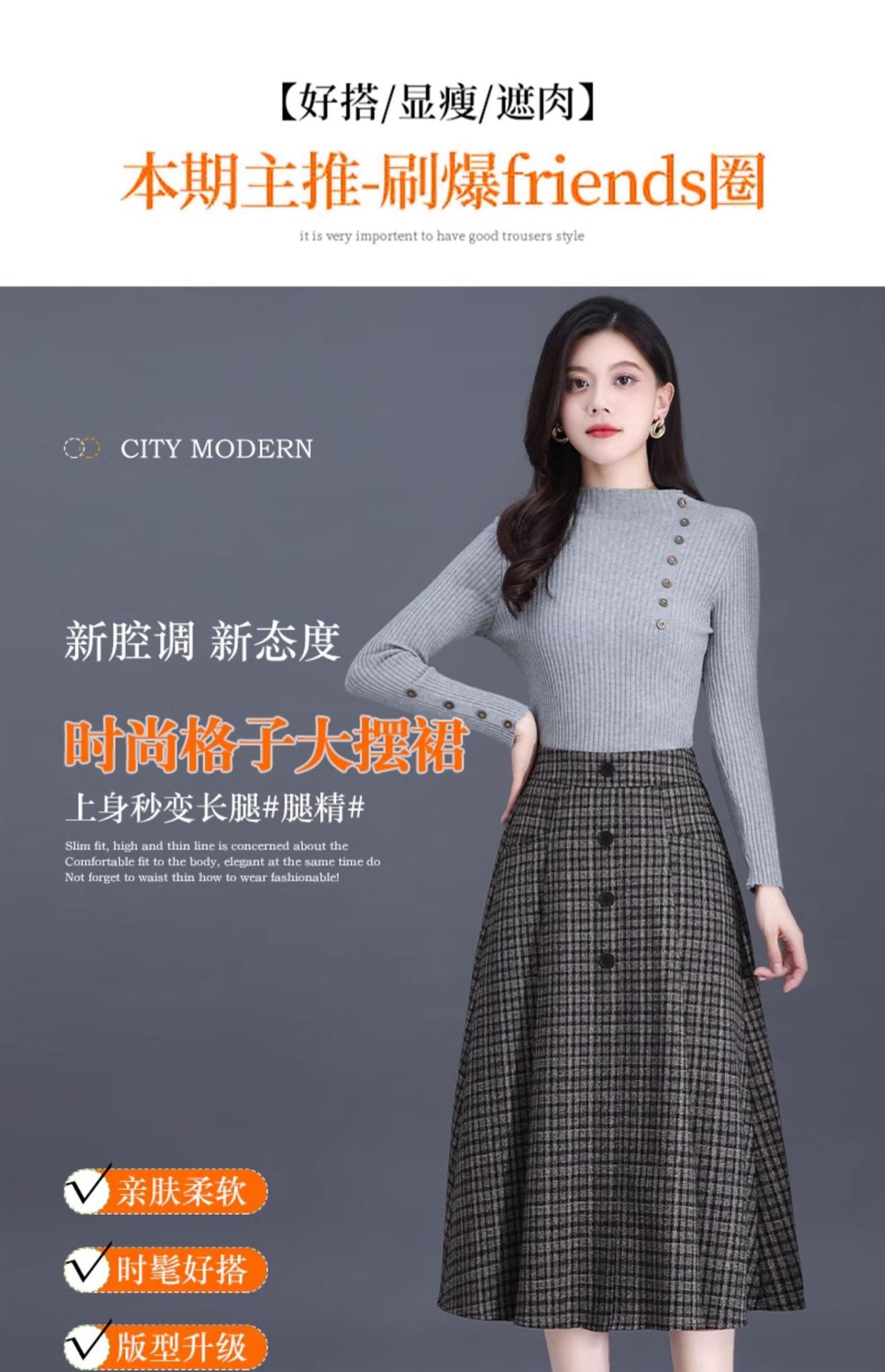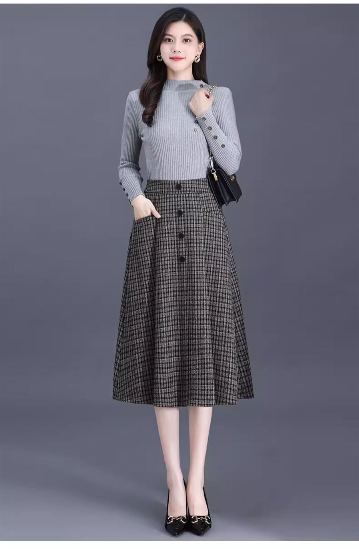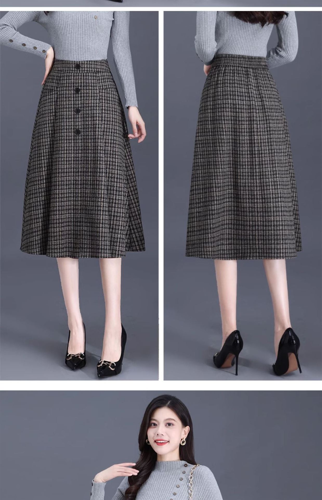 Falda acampanada Largo medio Moderna Falda que combina con todo Otoño e Invierno 2025 Nueva Adelgazante Lana Cuadros Casual Falda Paraguas