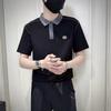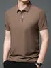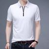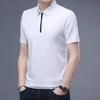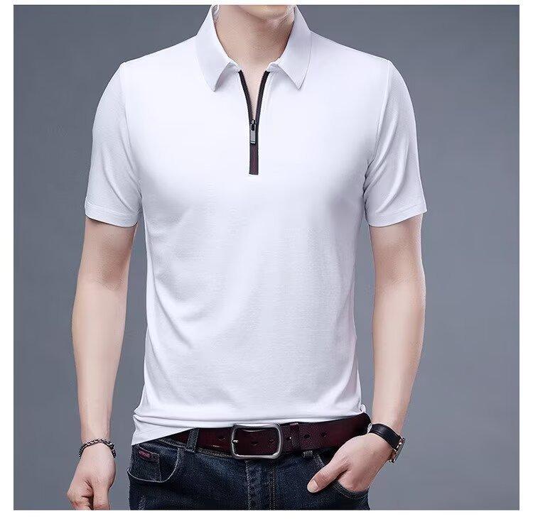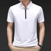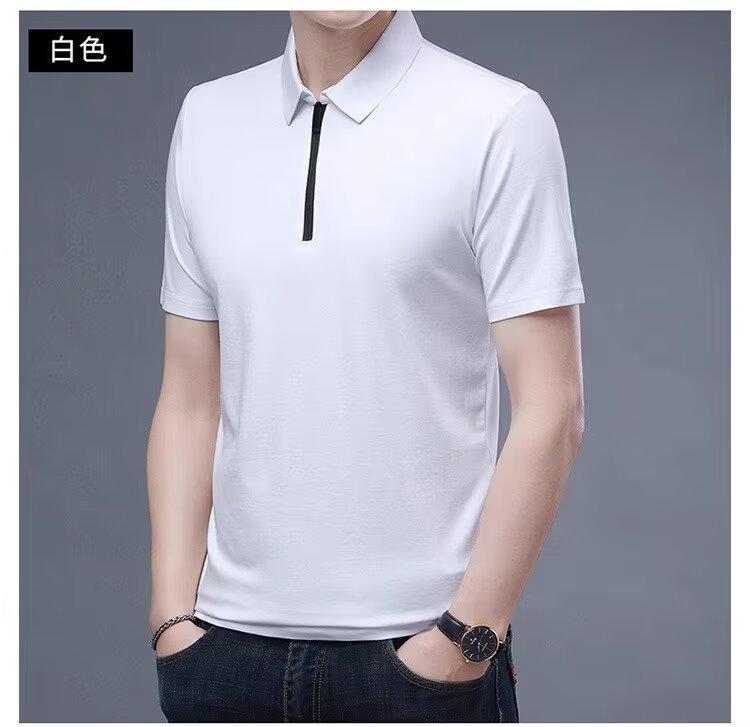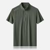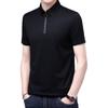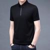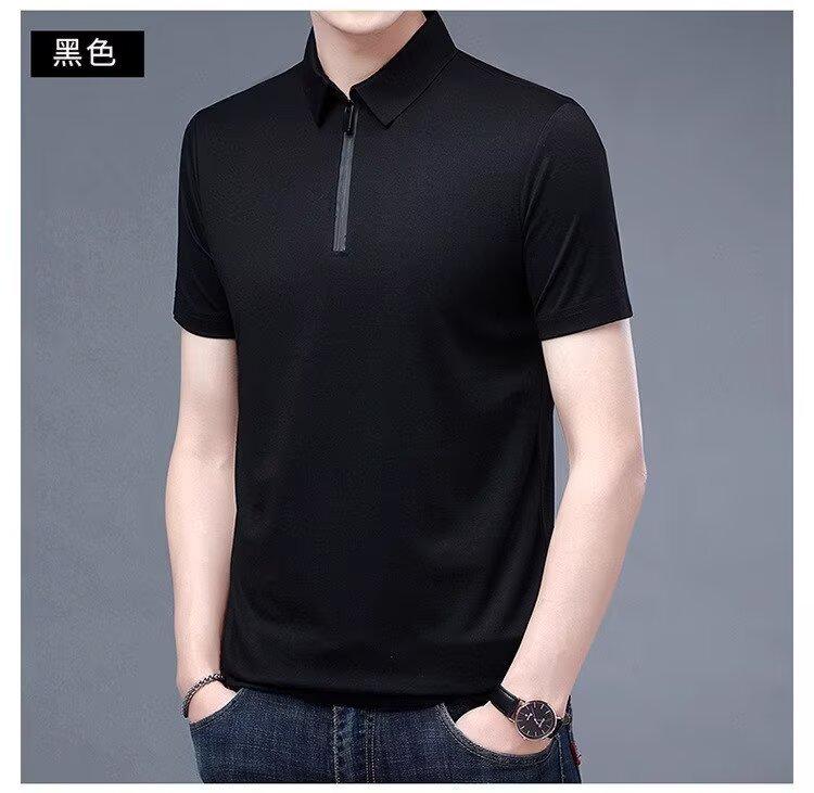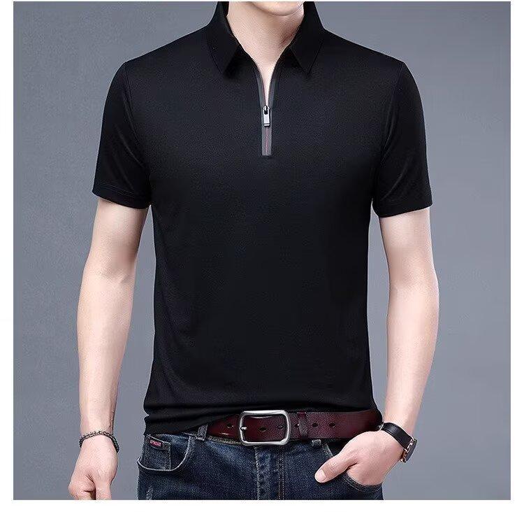 Camiseta de Verano de Seda de Hielo Fresca para Hombre de Solapa de Manga Corta Sencilla Slim de Media Manga Delgada con Cuello de Cremallera Color Puro Camisa Polo