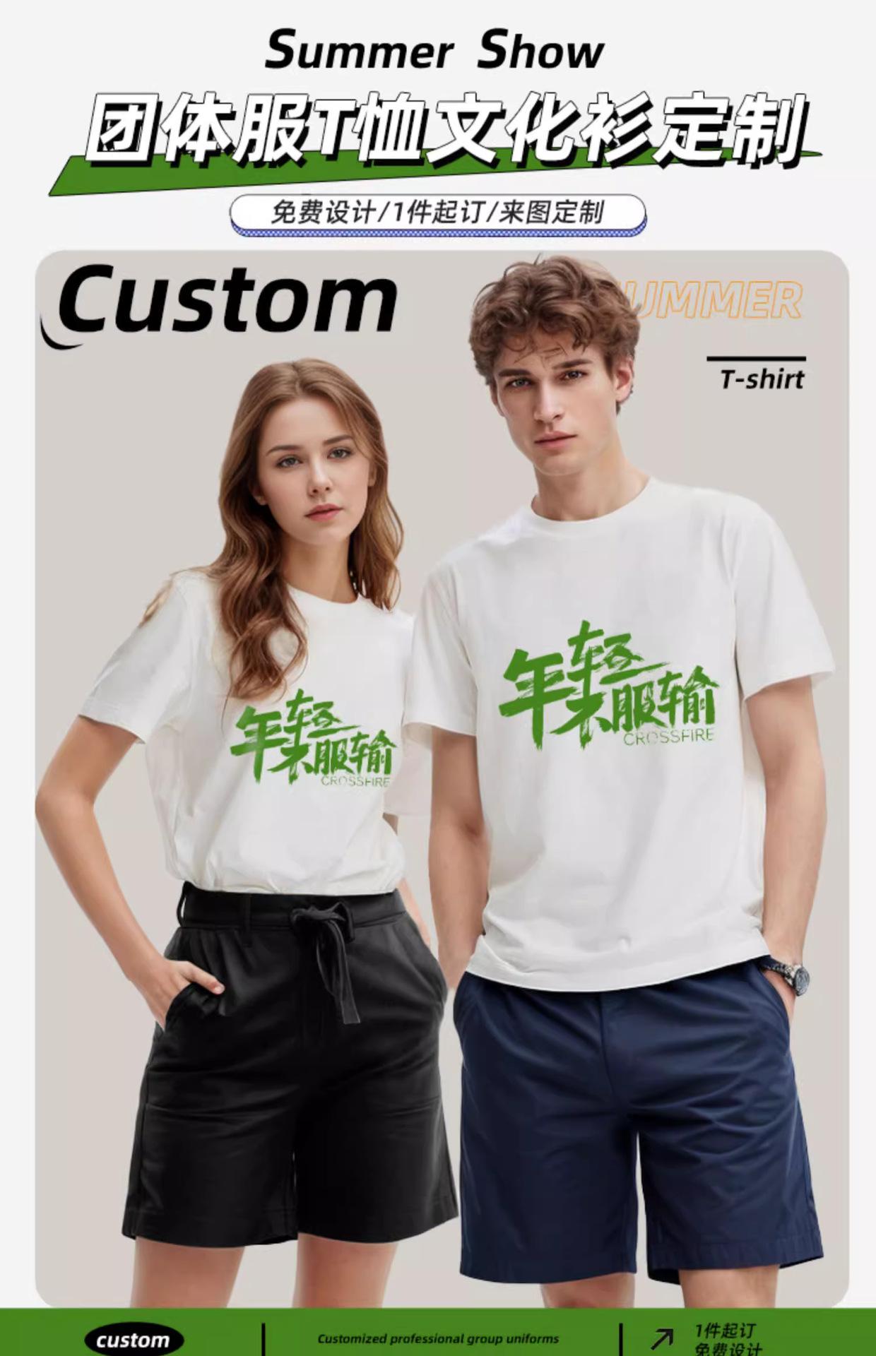 Playera de Algodón Puro Logo Personalizado Ropa de Trabajo Cuello Redondo Manga Corta Ropa de Grupo Fiesta Clase Cultura Camiseta Publicitaria Estampado Personalizado