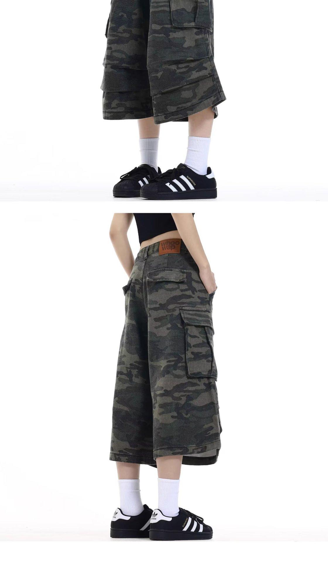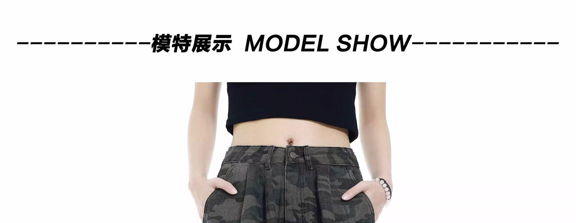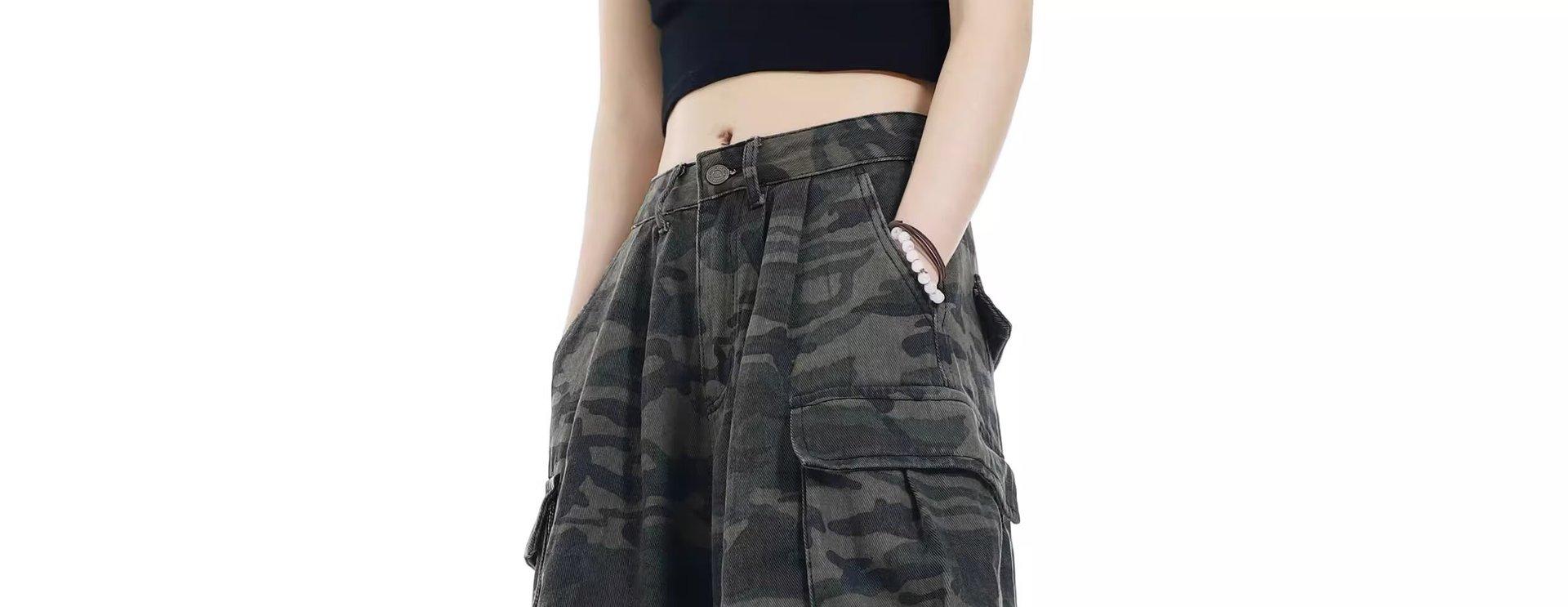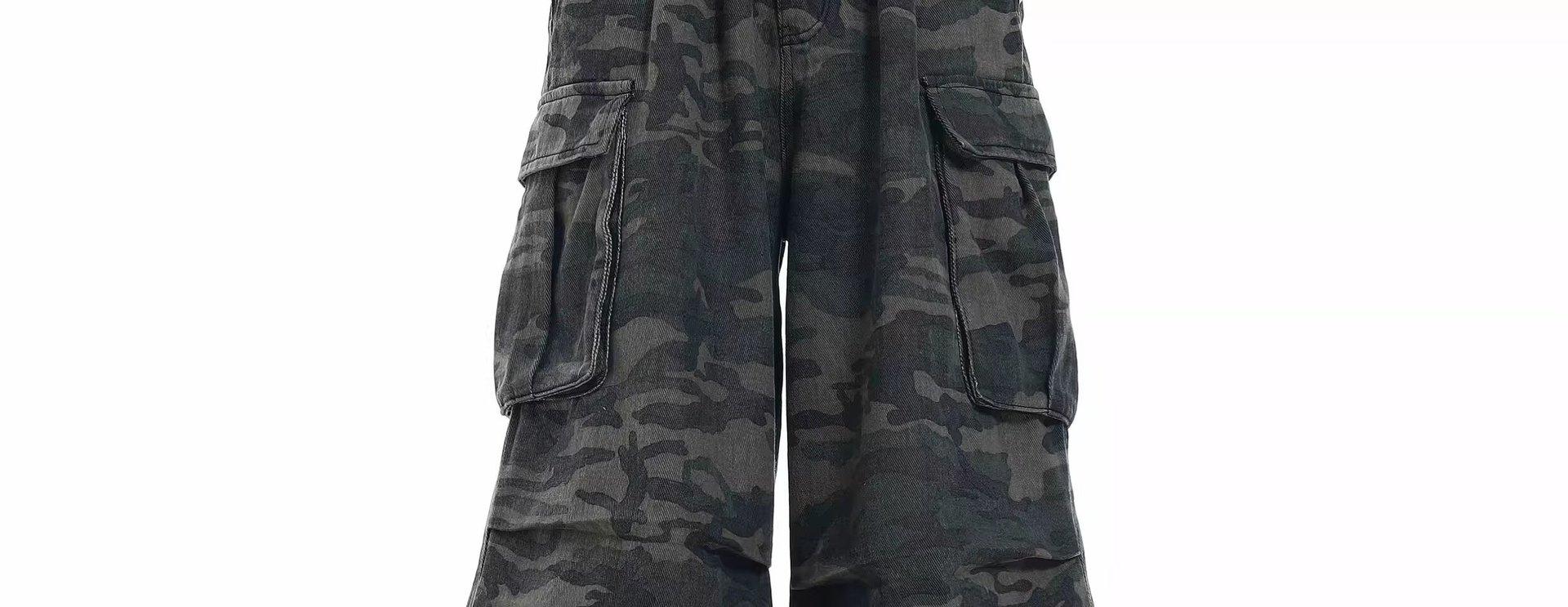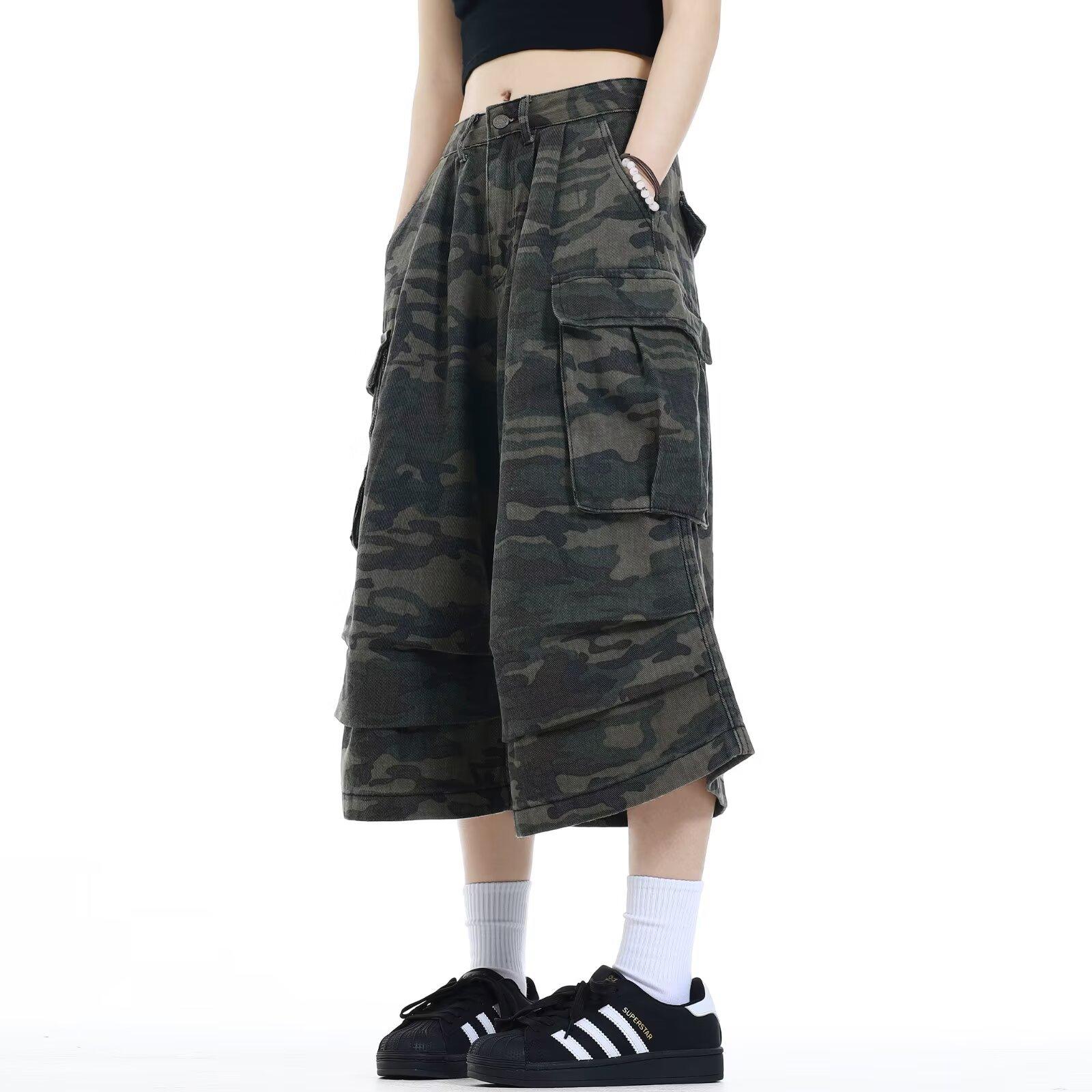 Pantalones Capri de Camuflaje Lavados Jeans Retro Rectos Overol Multibolsillos Holgados Adelgazantes Comercio Exterior Transfronterizo Mayoreo
