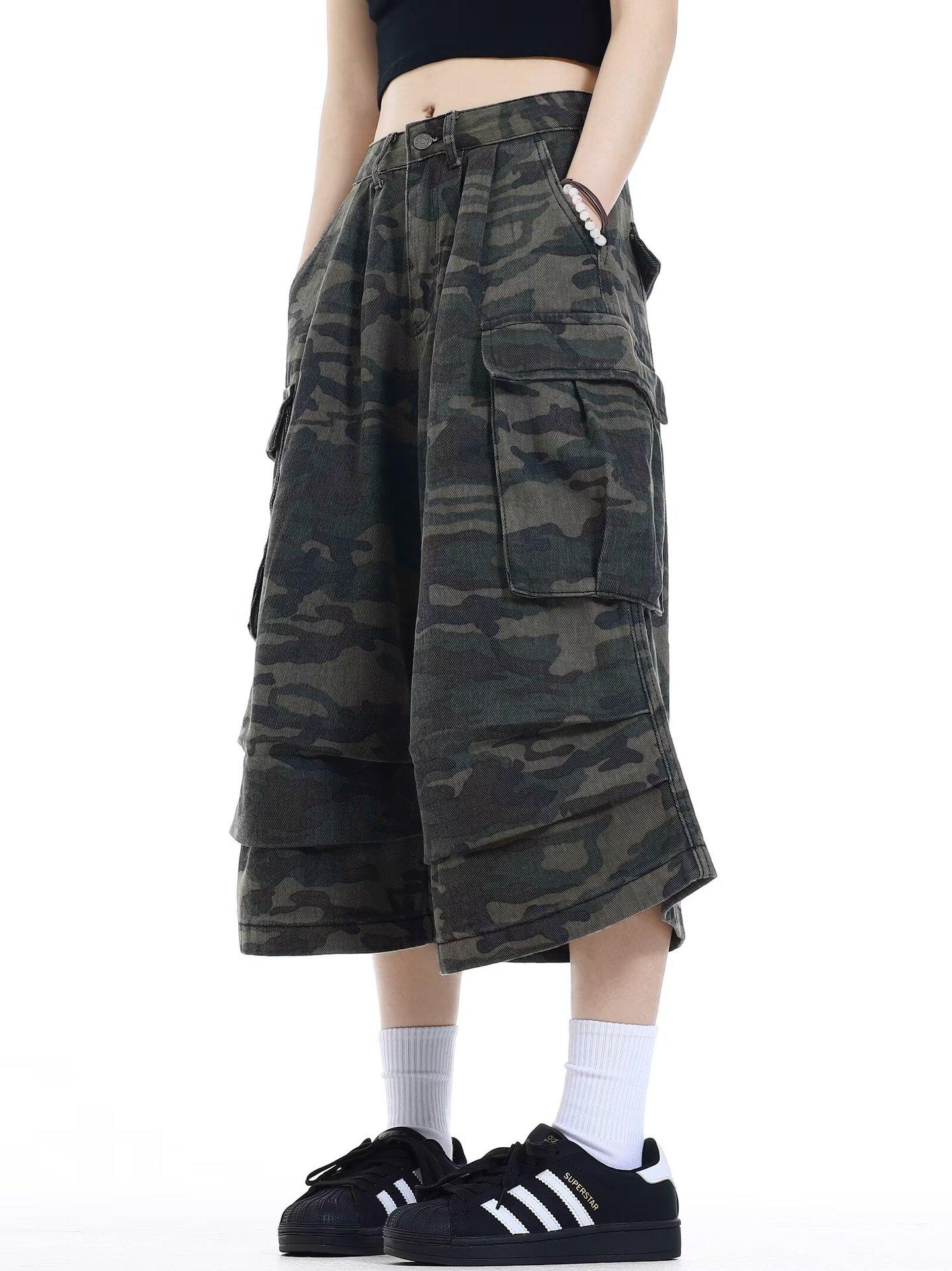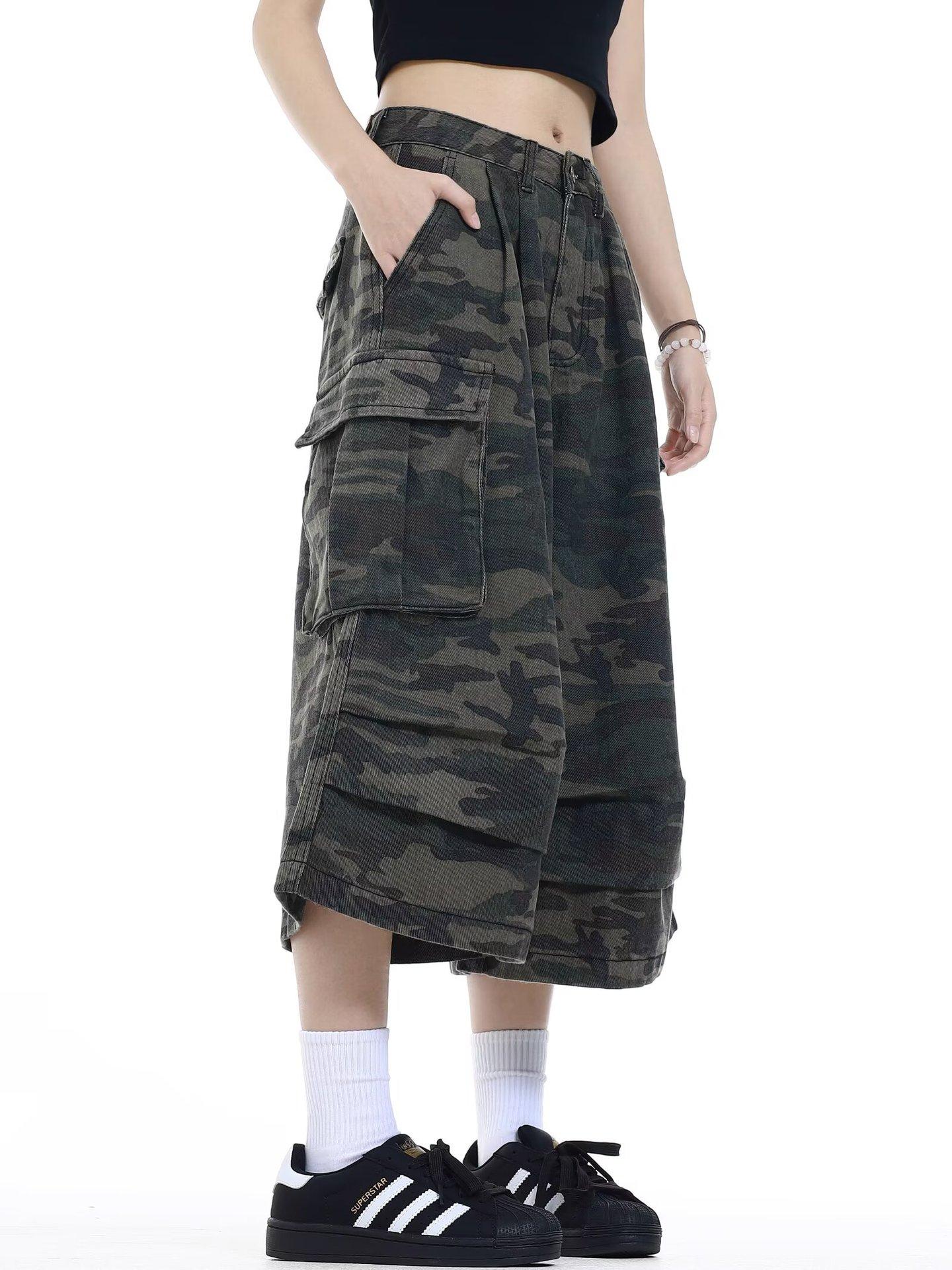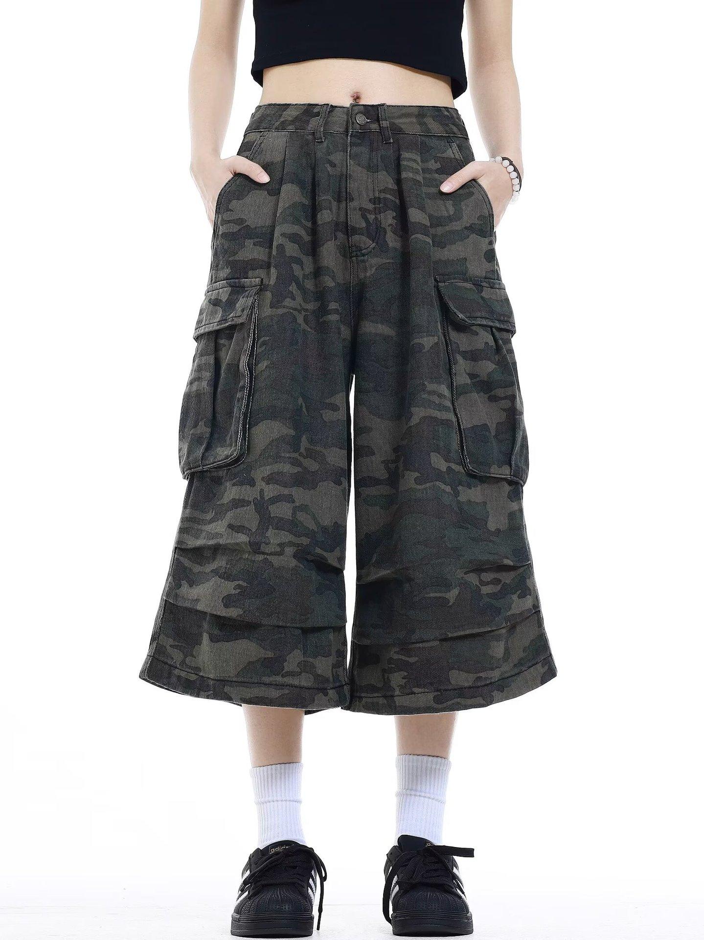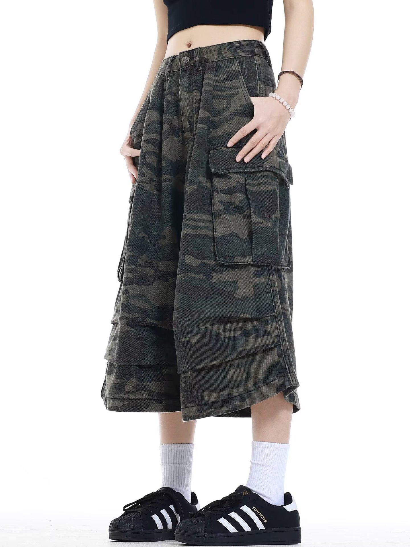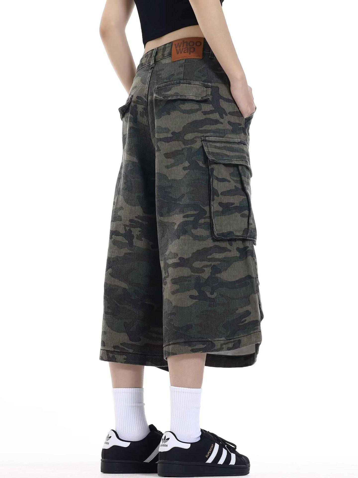Pantalones Capri de Camuflaje Lavados Jeans Retro Rectos Overol Multibolsillos Holgados Adelgazantes Comercio Exterior Transfronterizo Mayoreo