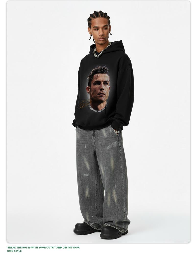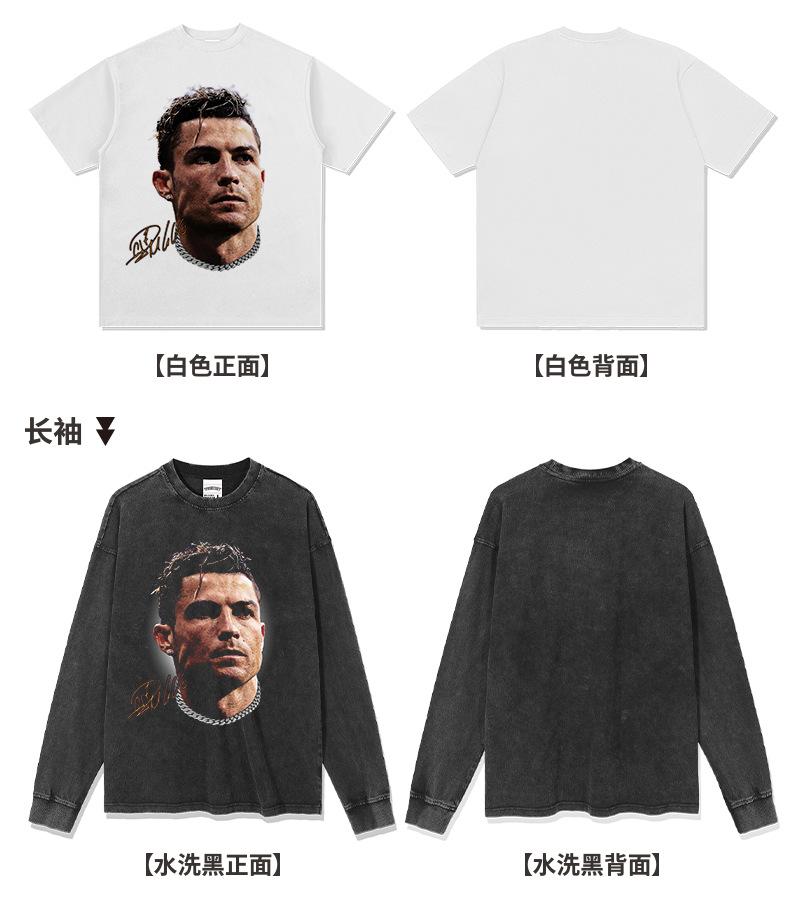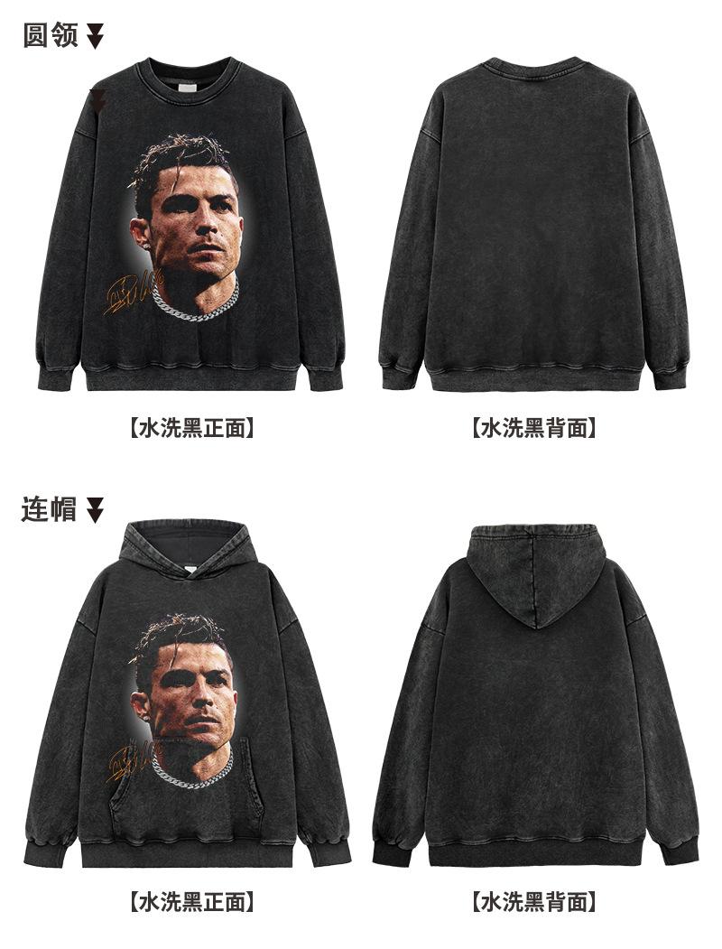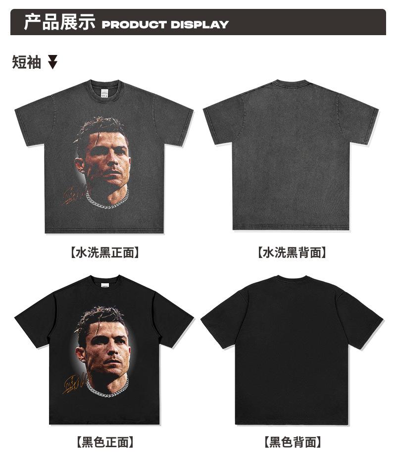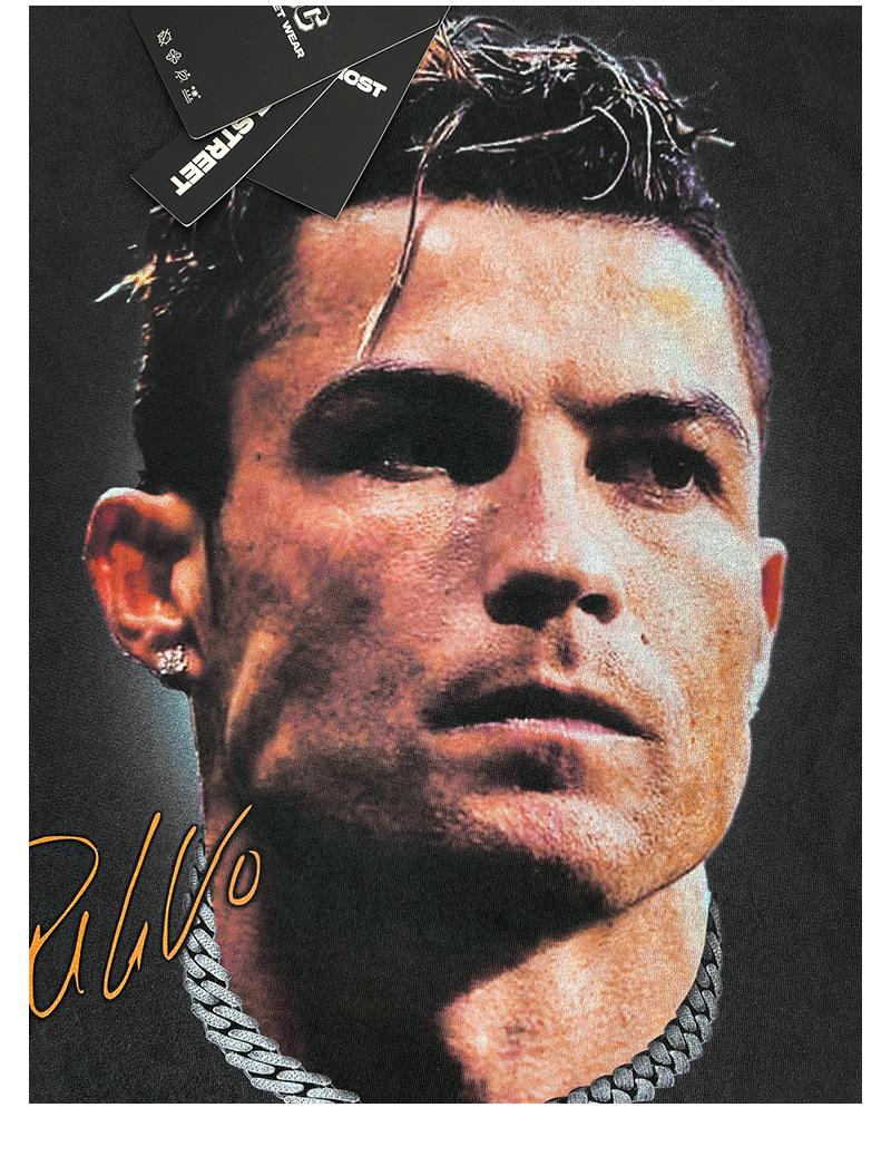 Fútbol transfronterizo American Vintage Ronaldo ronaldo Camiseta de manga corta estampada Sudadera con capucha pesada de cuello redondo