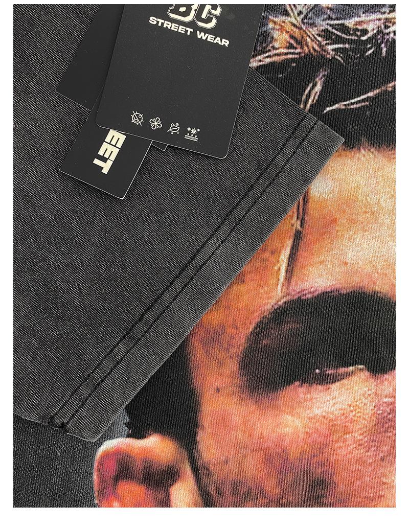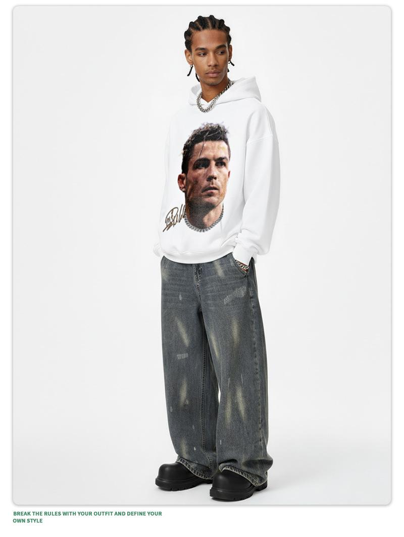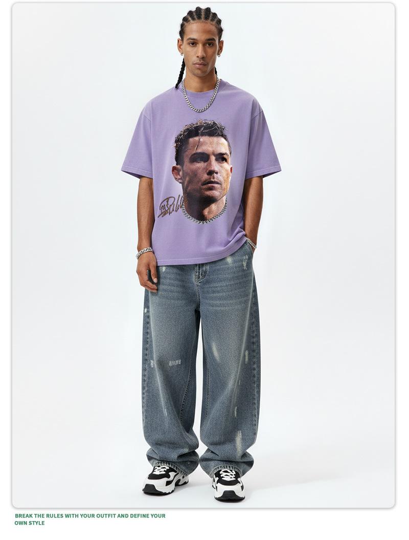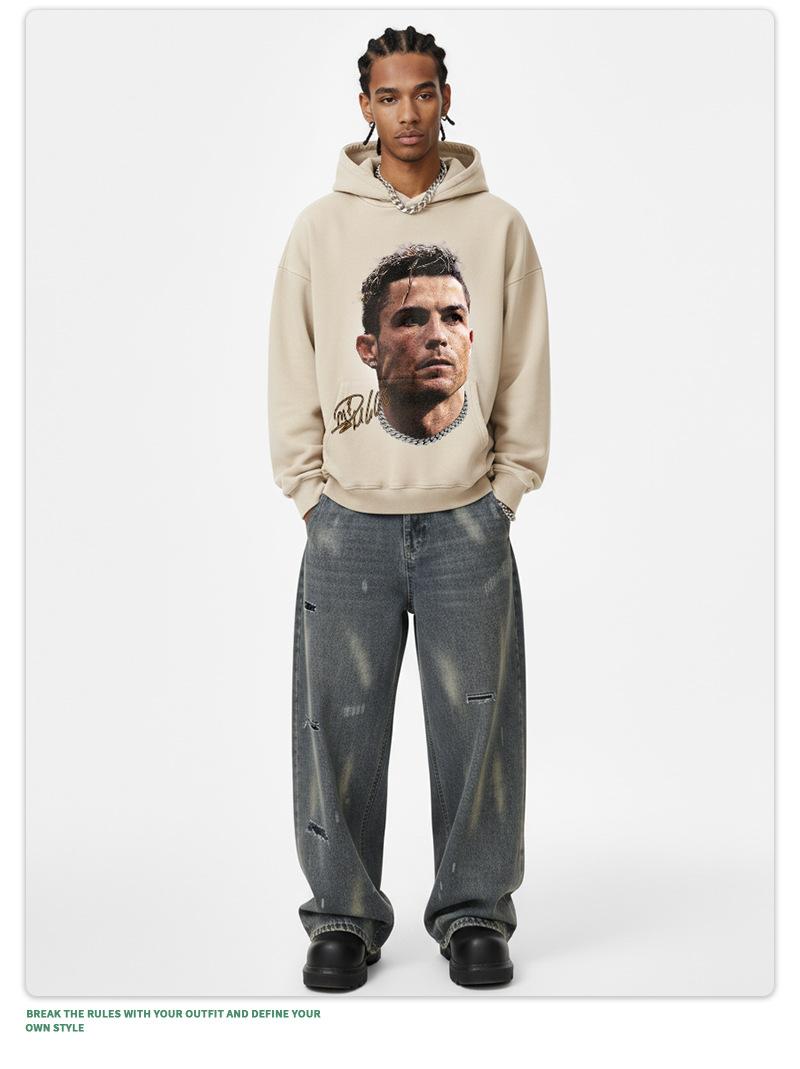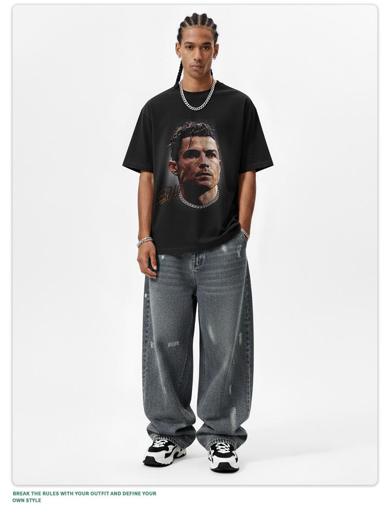 Fútbol transfronterizo American Vintage Ronaldo ronaldo Camiseta de manga corta estampada Sudadera con capucha pesada de cuello redondo