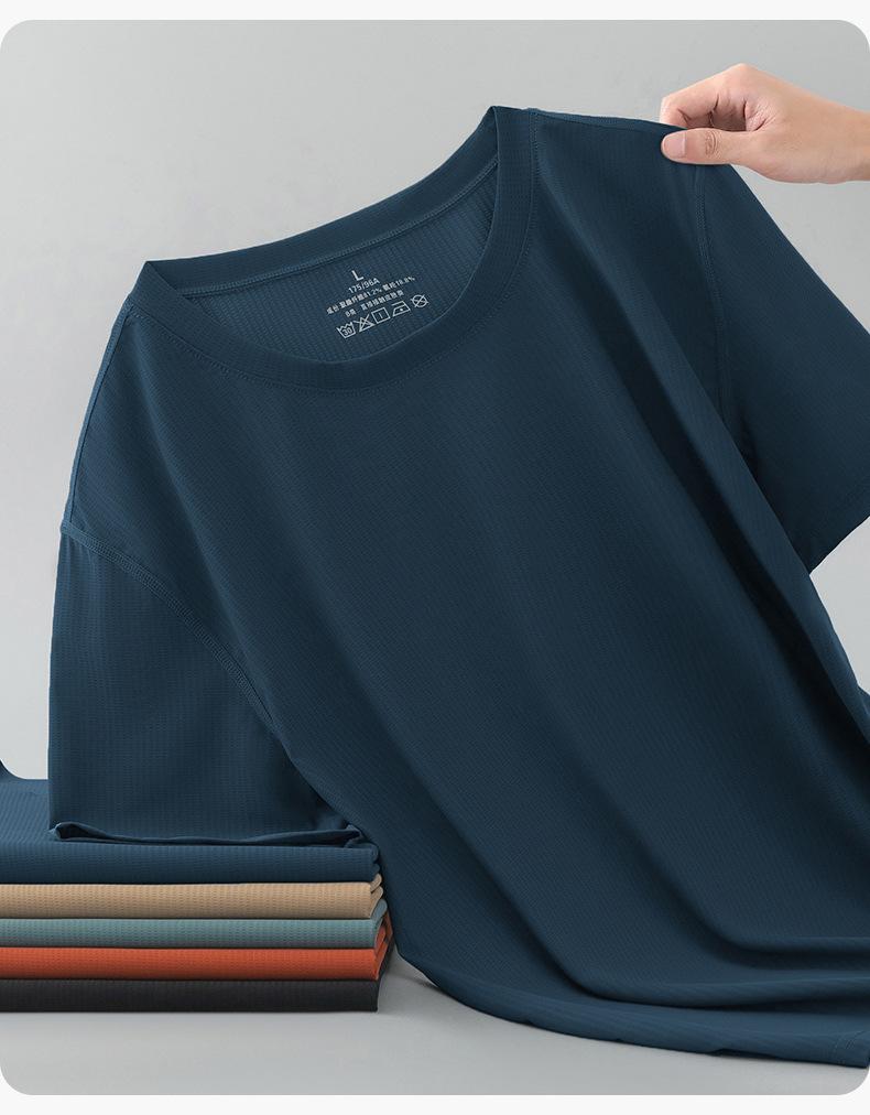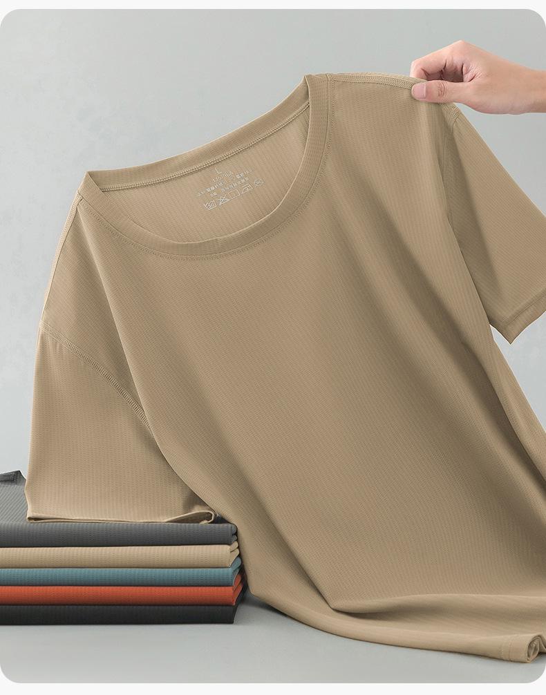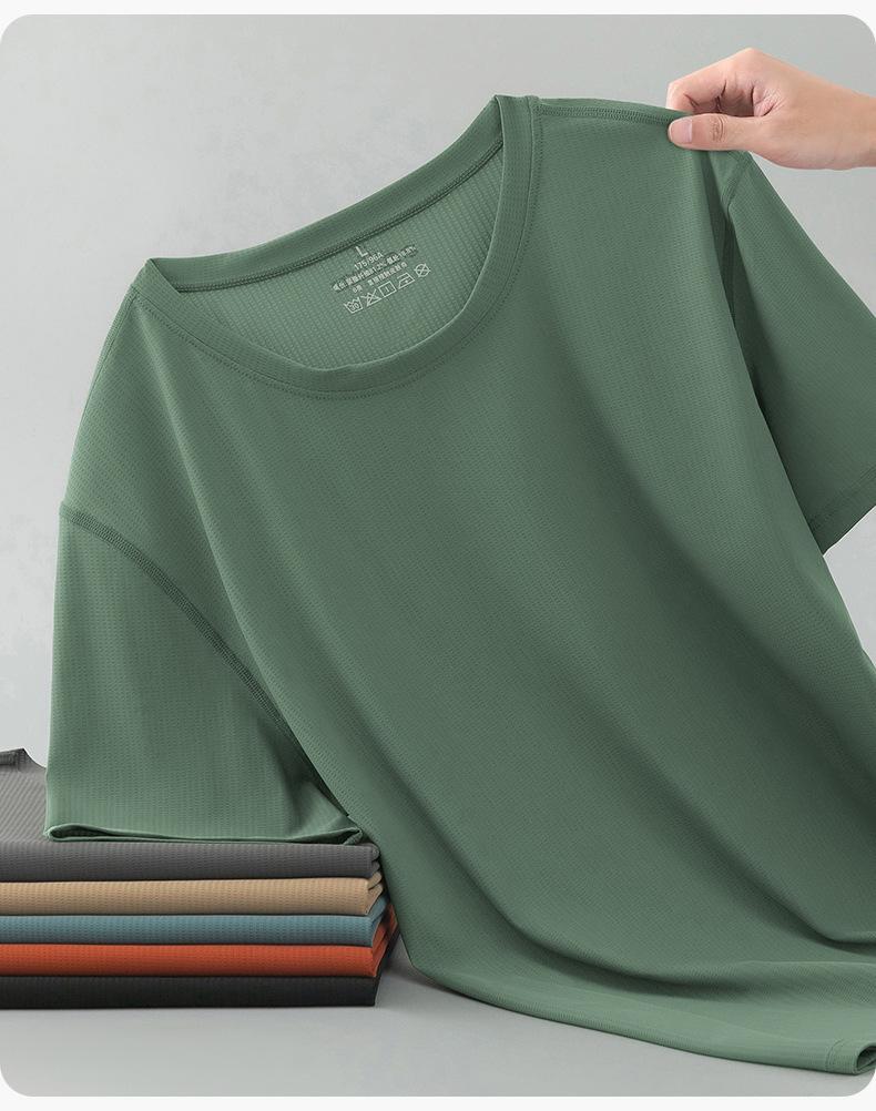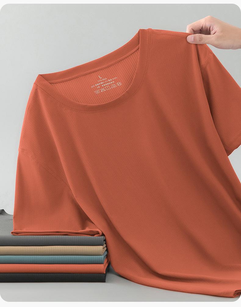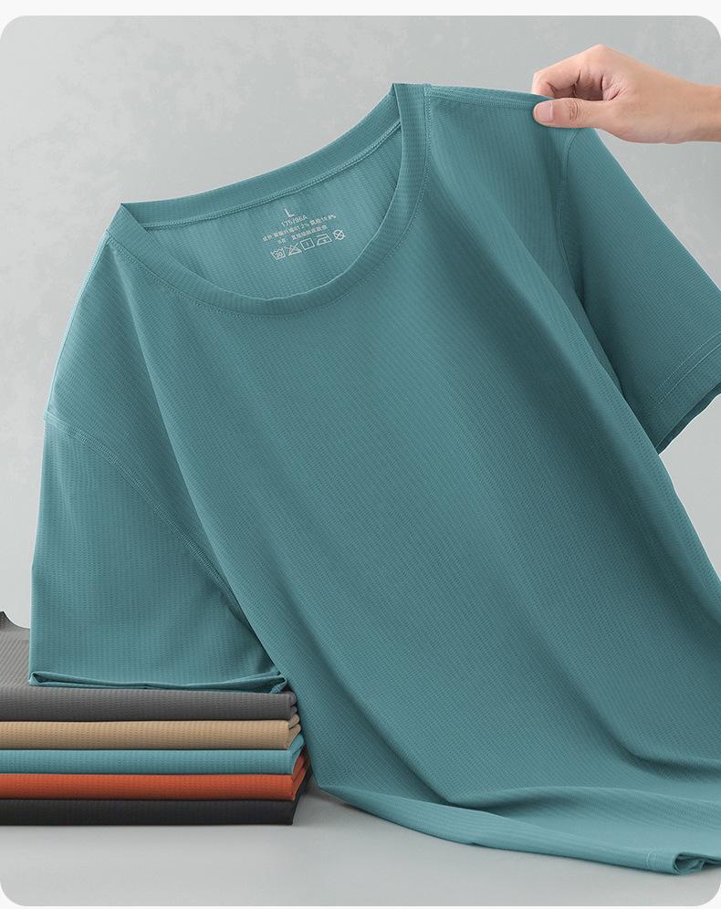 Camiseta de Seda de Hielo para Hombre de Manga Corta Verano Delgada Fresca de Secado Rápido Manga Media Malla Camiseta Tops para Fitness y Correr