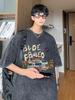 Camiseta de Manga Corta Vintage Lavada Estilo Americano para Hombre, Estampada Casual Holgada Moderna Retro High Street Elegante Media Manga