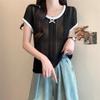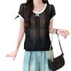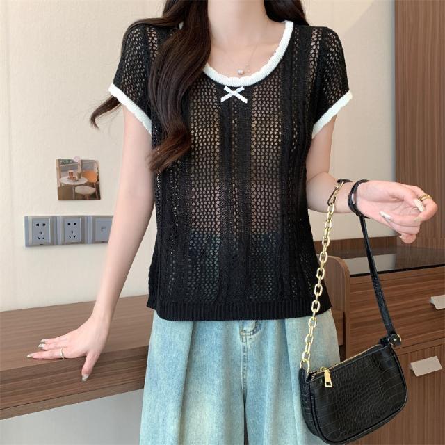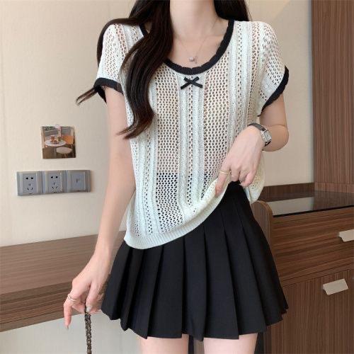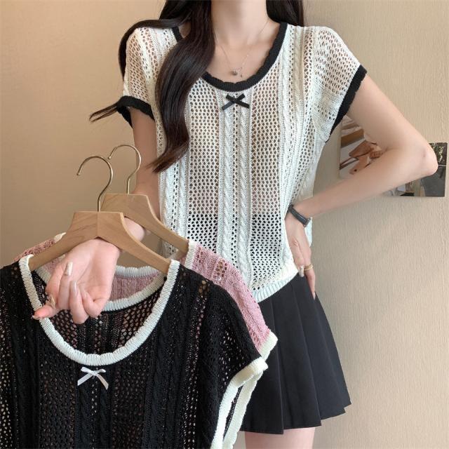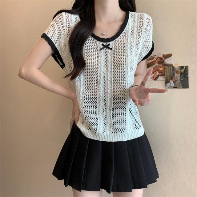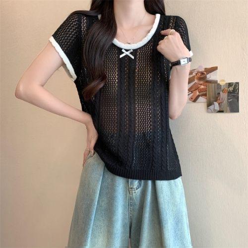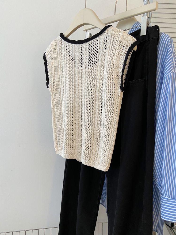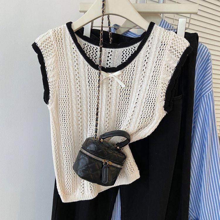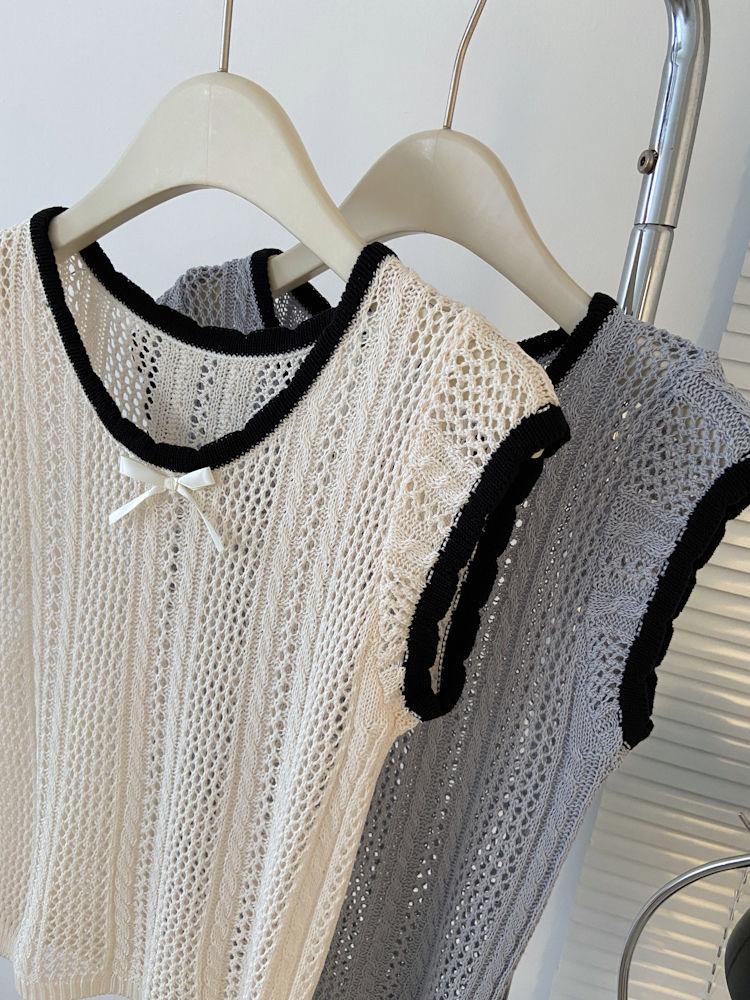 Suéter Calado con Lazo Estilo Coreano para Mujer Verano Sin Mangas Cuello Redondo Holgado y Elegante Prendas Exteriores Jersey Top