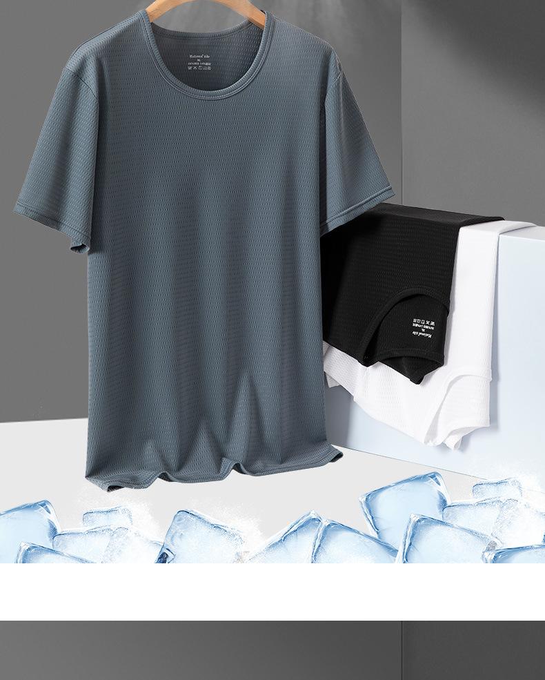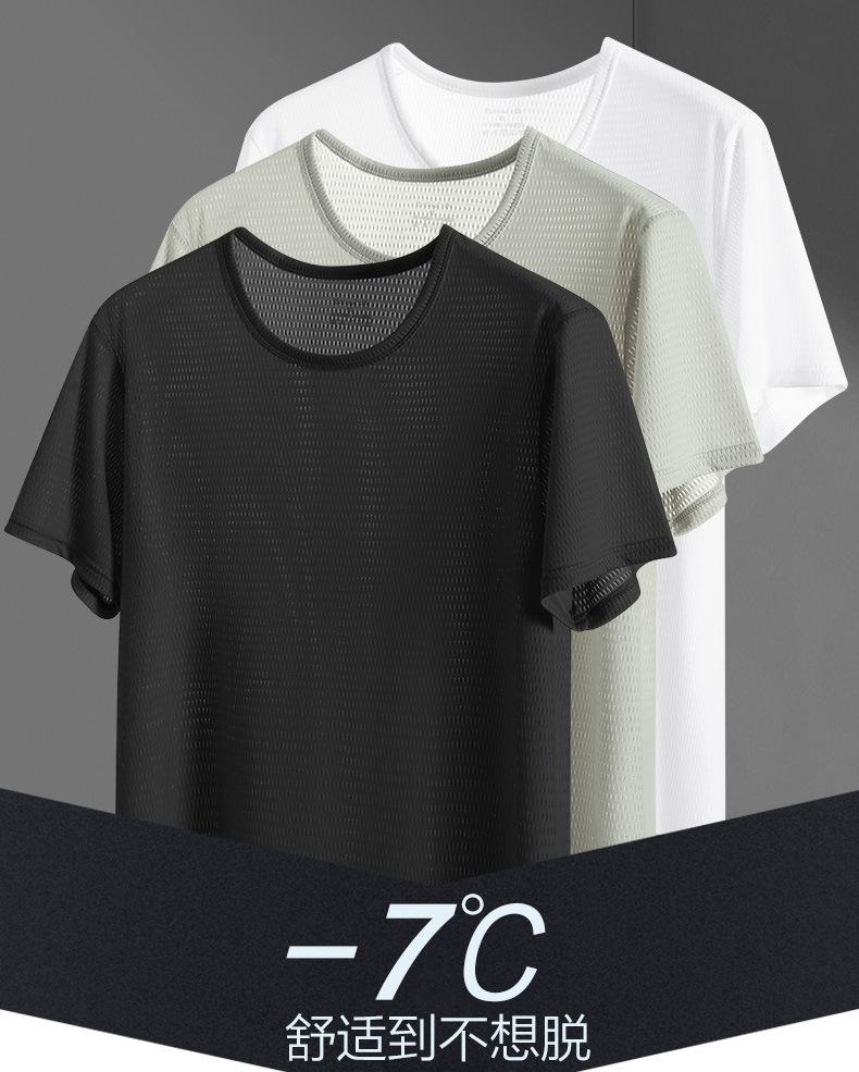Camiseta de Verano de Seda de Hielo para Hombre Ropa de Malla de Secado Rápido Camiseta Fina de Manga Corta con Sensación de Hielo Top Deportivo para Aire Acondicionado Manga Corta Verano