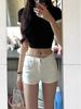 Shorts de mezclilla blancos petite de tiro bajo y corte slim para mujer, adelgazantes de verano, versátiles, de pierna recta, para chica hot al por mayor
