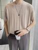 Camiseta de Punto de Seda Helada de Verano para Hombre Cuello Redondo Tejido Ligero Maduro Estilo Coreano Rayada Manga Corta Camiseta Color Sólido Camisa de Punto Elástica
