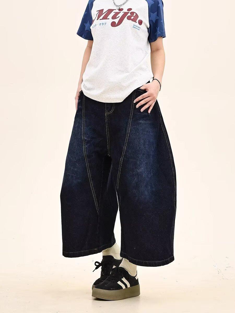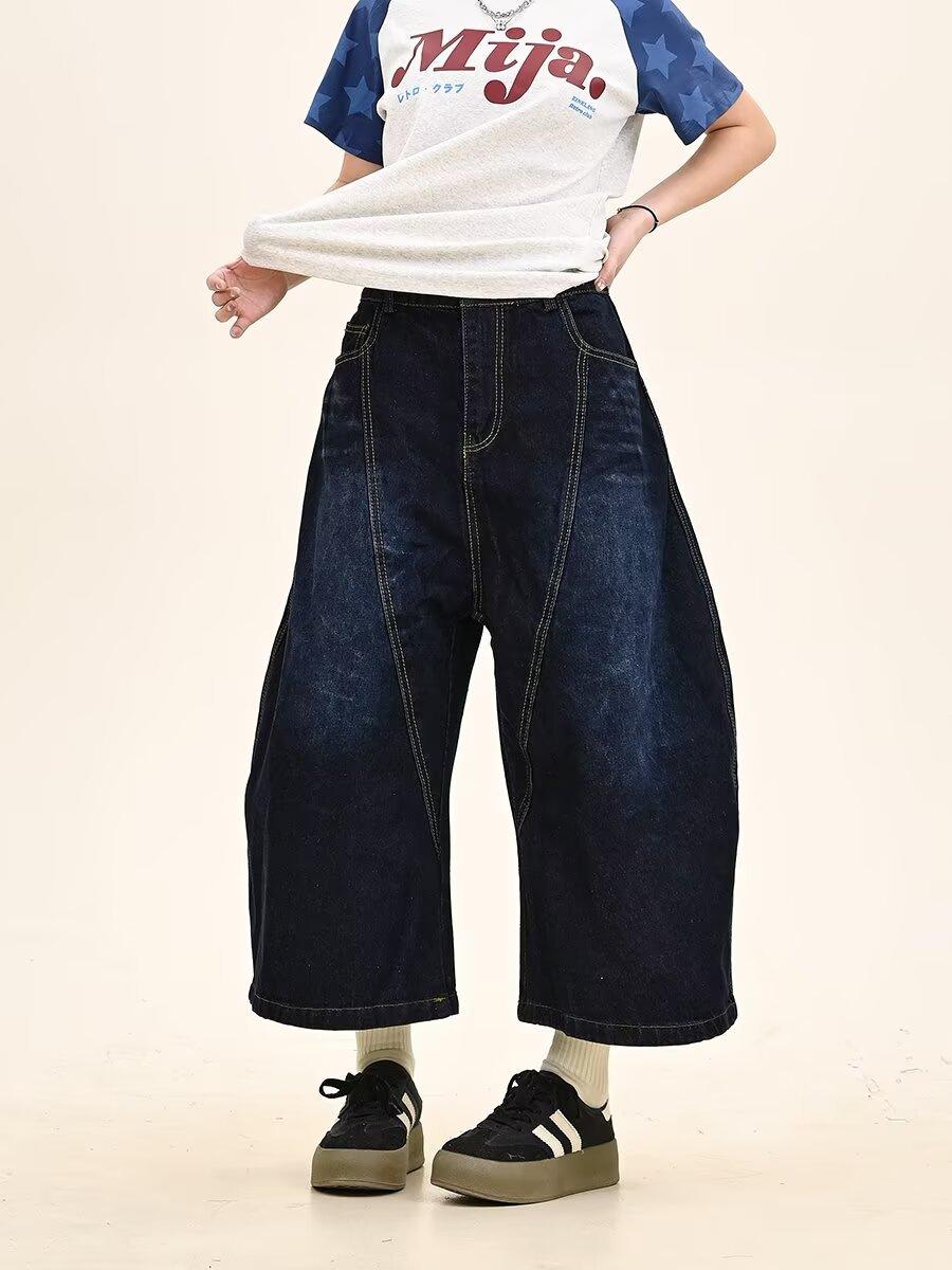 Pantalones Cortos de Mezclilla Lavado Sickle para Hombre Primavera 2025 Nuevo Suelto Street Retro Pierna Ancha Trendy